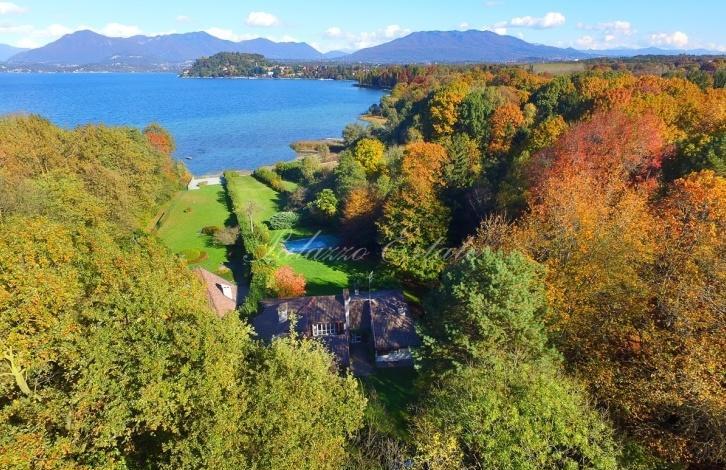 Expressive villa in a chalet style with an area of 500 sq. m. on the first line of Lake Maggiore with its own exit to the beach!