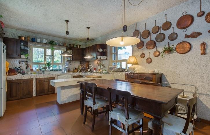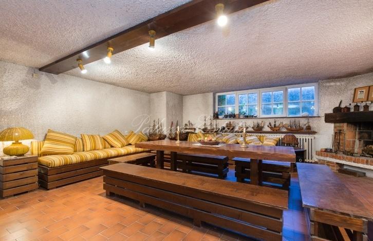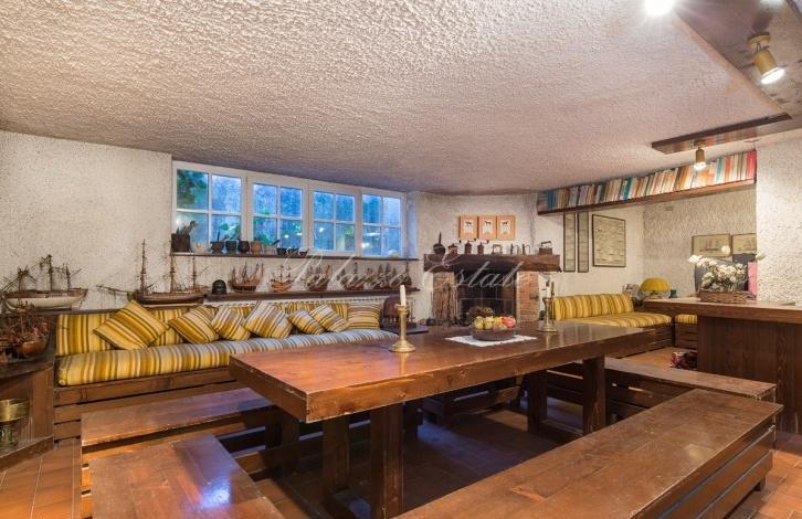 The villa has 5 bedrooms (one of them is single) with bathrooms, plus a bedroom with a bathroom for the staff. The day zone includes a living room with a fireplace, a dining room and a large kitchen on the first floor. On the semi-underground floor there is a spacious tavern with a fireplace and a small kitchen.