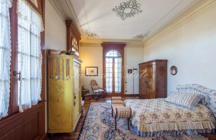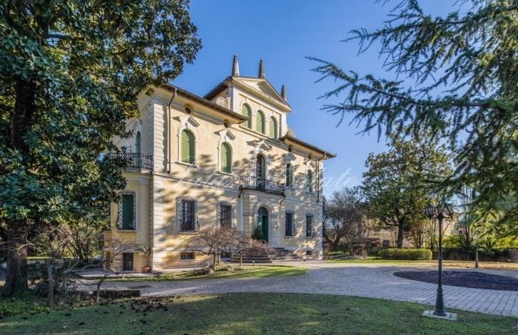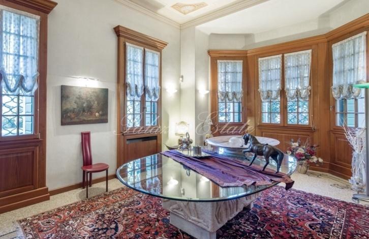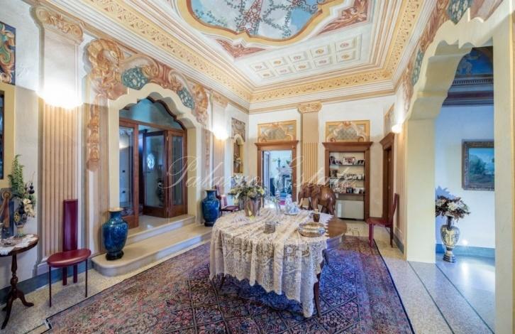 Villa built in 20-ies of the last century, with a Park of 3,500 sqm and an underground garage for sale in a small town, 20 km from Verona. Includes a spacious day area with walls and ceilings painted with frescoes, 4 bedrooms and 6 bathrooms.