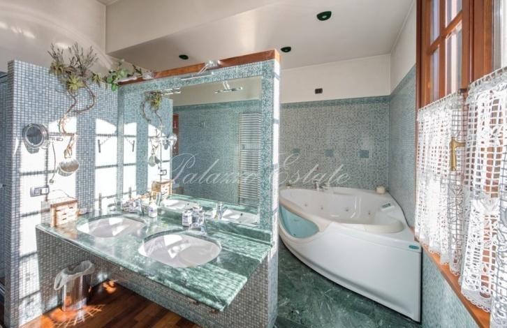 The first floor of the Villa has a spacious living area, floors which are fully finished by local craftsmen with mosaics in Venetian style. From the main entrance hallway leads on one side into the dining room and a large living room with fireplace of red Verona marble.