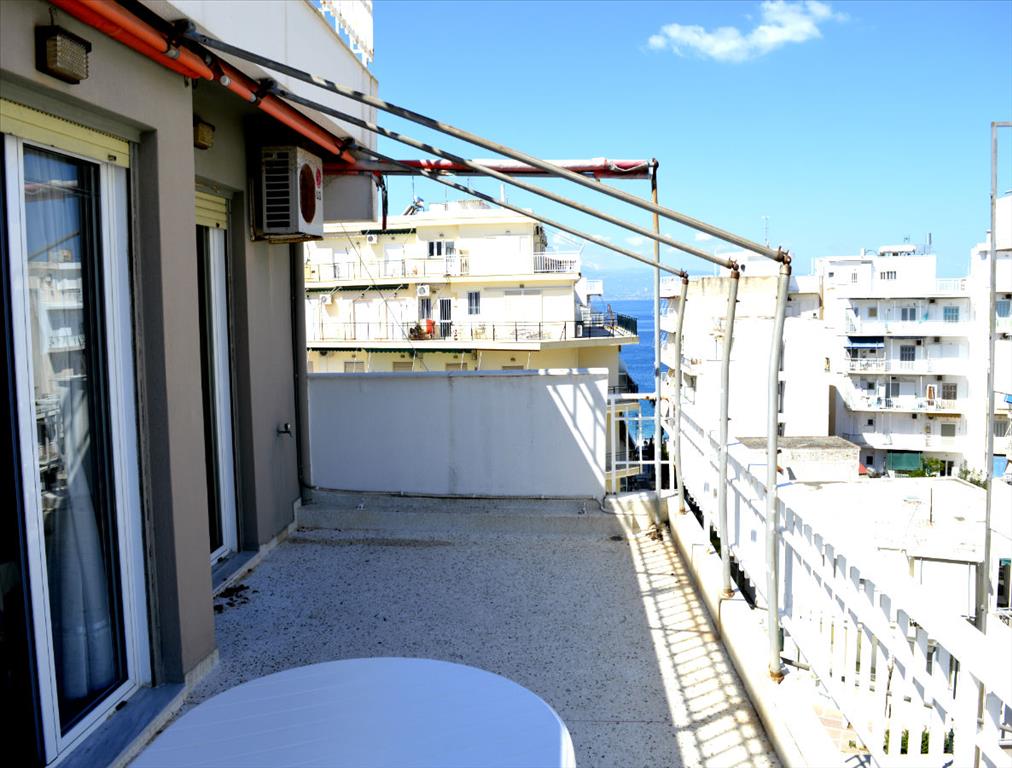 For sale apartment of 66 square meters in Loutraki. The apartment is located on the sixth floor and consists of 2 bedrooms, living room with kitchen, one kitchen, one bathroom. The Windows offer views of the sea, the mountains and the city. The object has air conditioning, awnings. The property is sold with furniture. The building is an Elevator. To the property belongs a Parking space. The apartment is located in the city of Loutraki