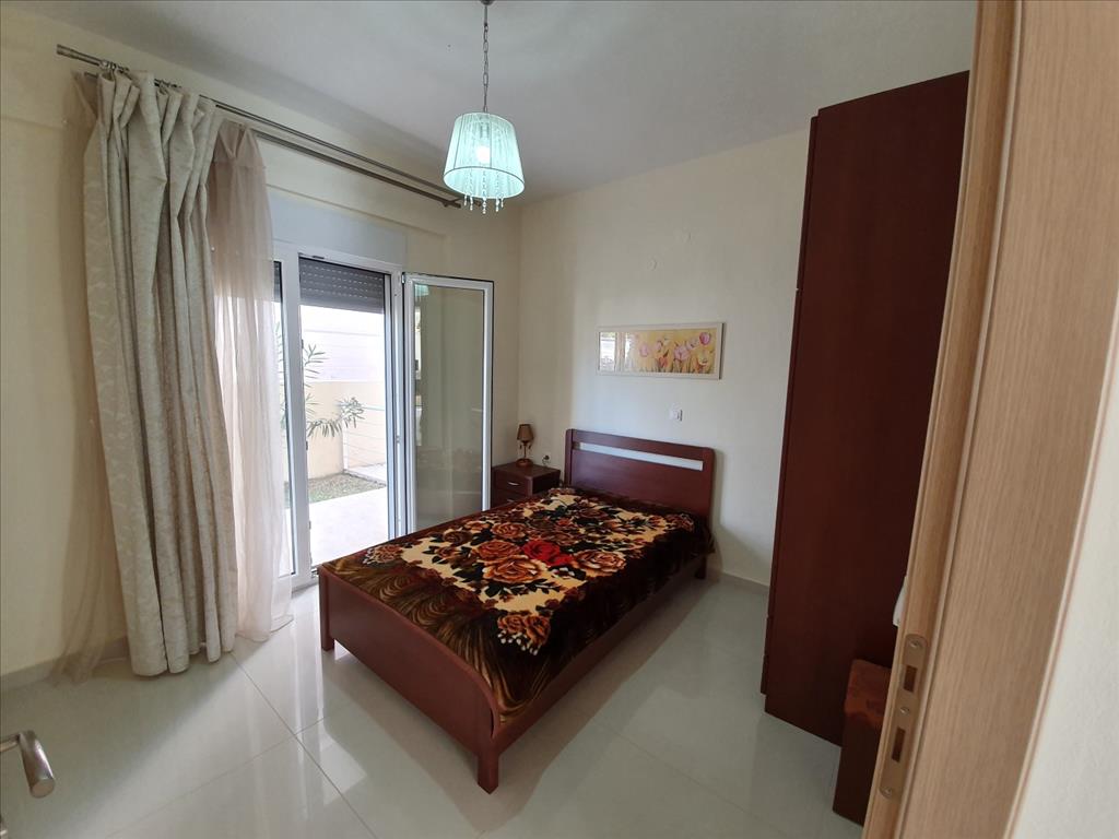 For sale apartment with an area of 63 sqm on the Kassandra Peninsula, Halkidiki, Greece The apartment is located on the ground floor and consists of 2 bedrooms, living room with kitchen, one shower room. The object has a fireplace, air conditioning. The property is sold with furniture. The on-site swimming pool personal use.