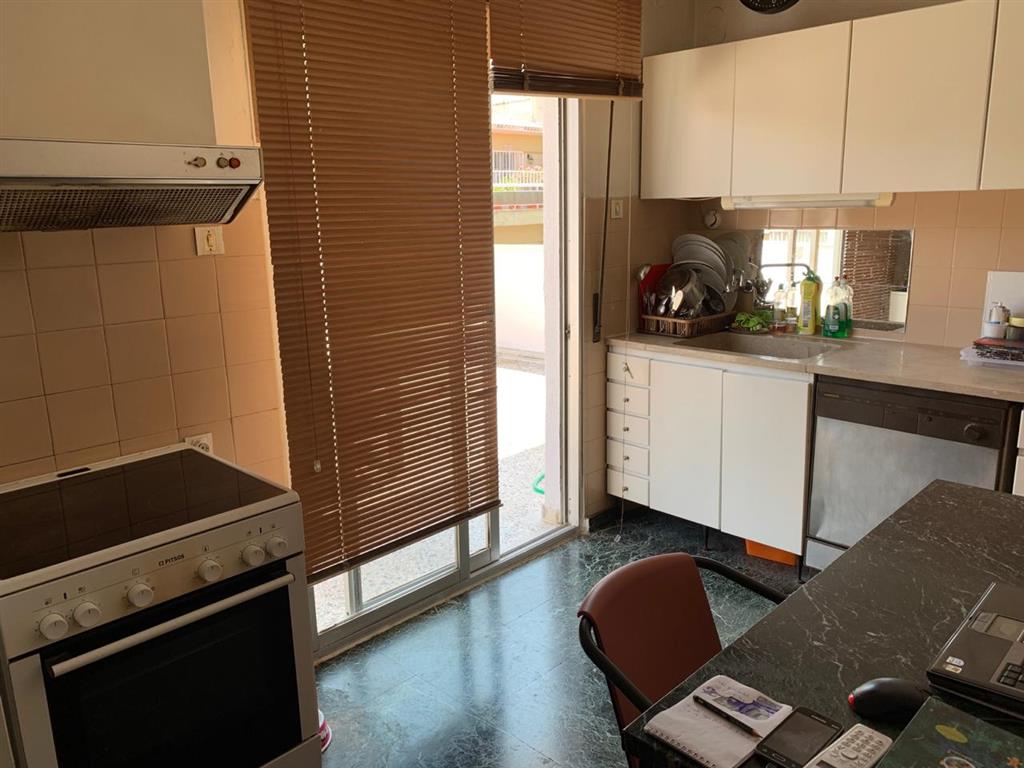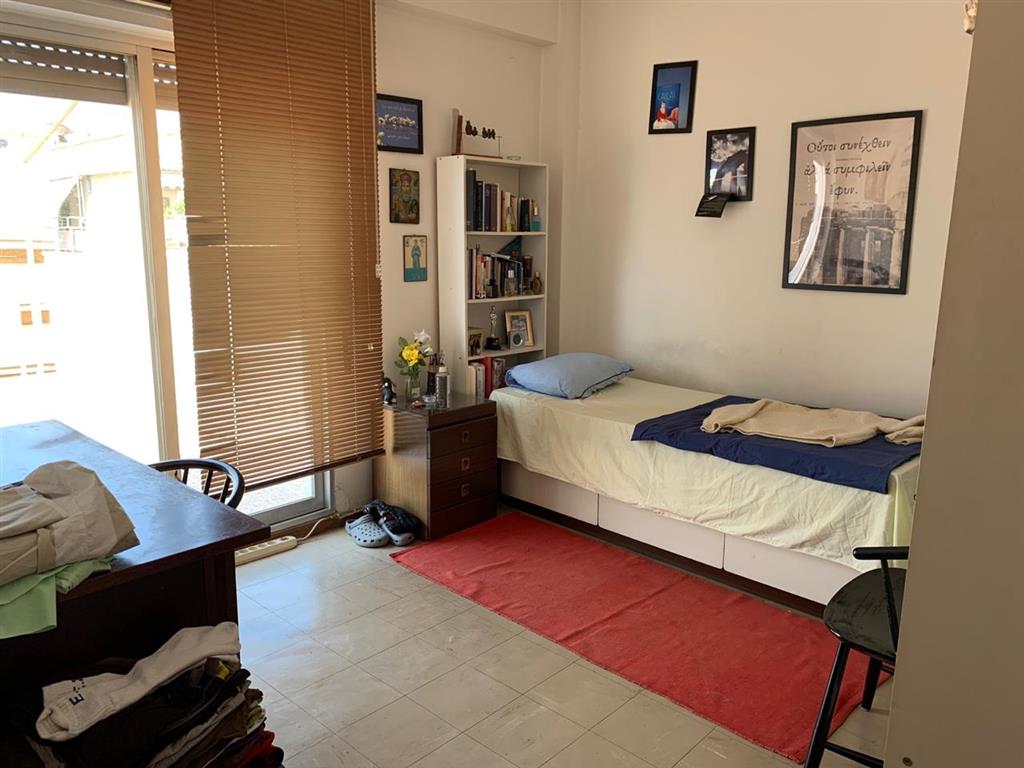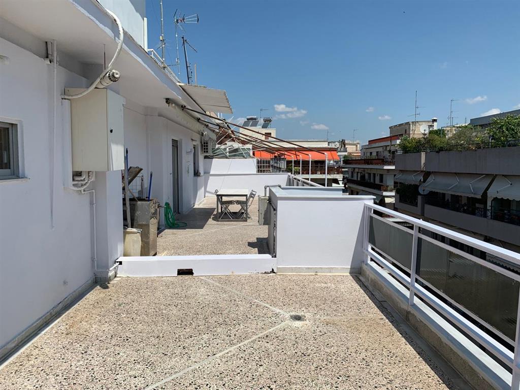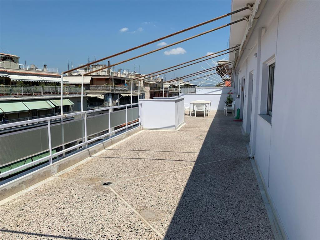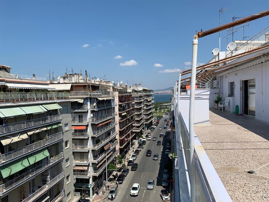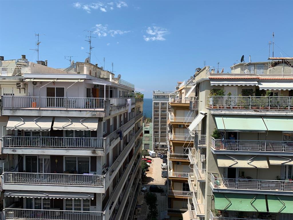 Apartment for sale 125 sqm in Thessaloniki. The apartment is located on the eighth floor and consists of 3 bedrooms, living room, one kitchen, one bathroom, one bathroom. The apartment has a corner location. The Windows offer views of the sea and the city. The object has solar panels for water heating, air conditioning, awnings.