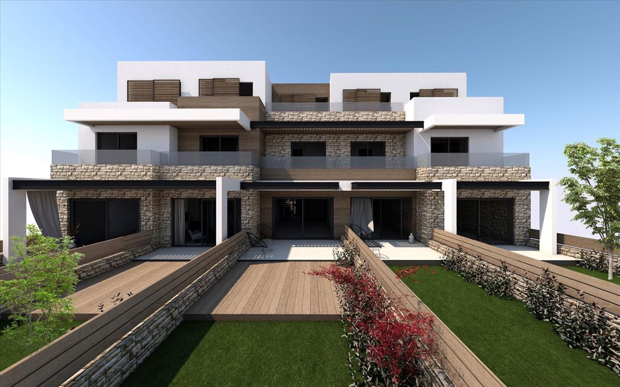 For sale townhouse with area of 95 sqm on the Kassandra Peninsula, Halkidiki, Greece The townhouse is on 3 levels. The first floor consists of living room with kitchen, one shower room. The second floor consists of 2 bedrooms, one shower room. The third floor consists of one bedroom. The townhouse enjoys a corner location. The Windows offer views of the sea, the mountains and the forest. The object has a fireplace. To the property belongs a Parking space.
