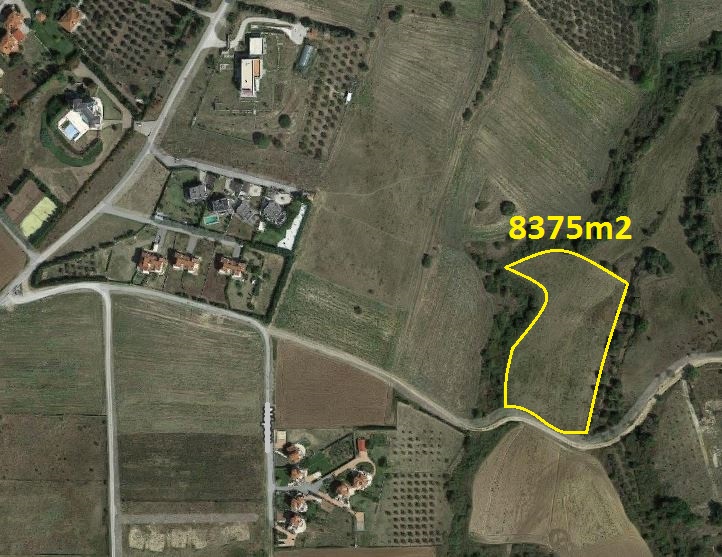 Land for sale area of 8375 sq. m. in the suburbs of Thessaloniki. On-site water, electricity, and there is a building permit. Has mountain views.
