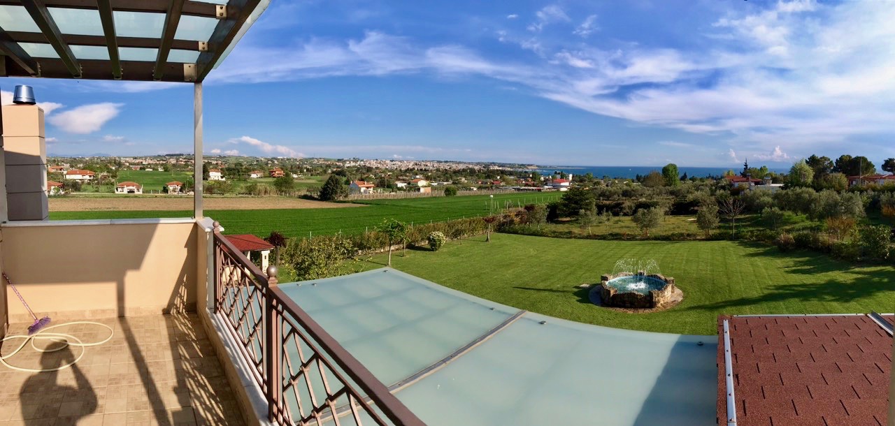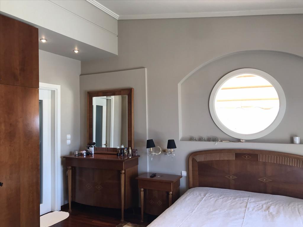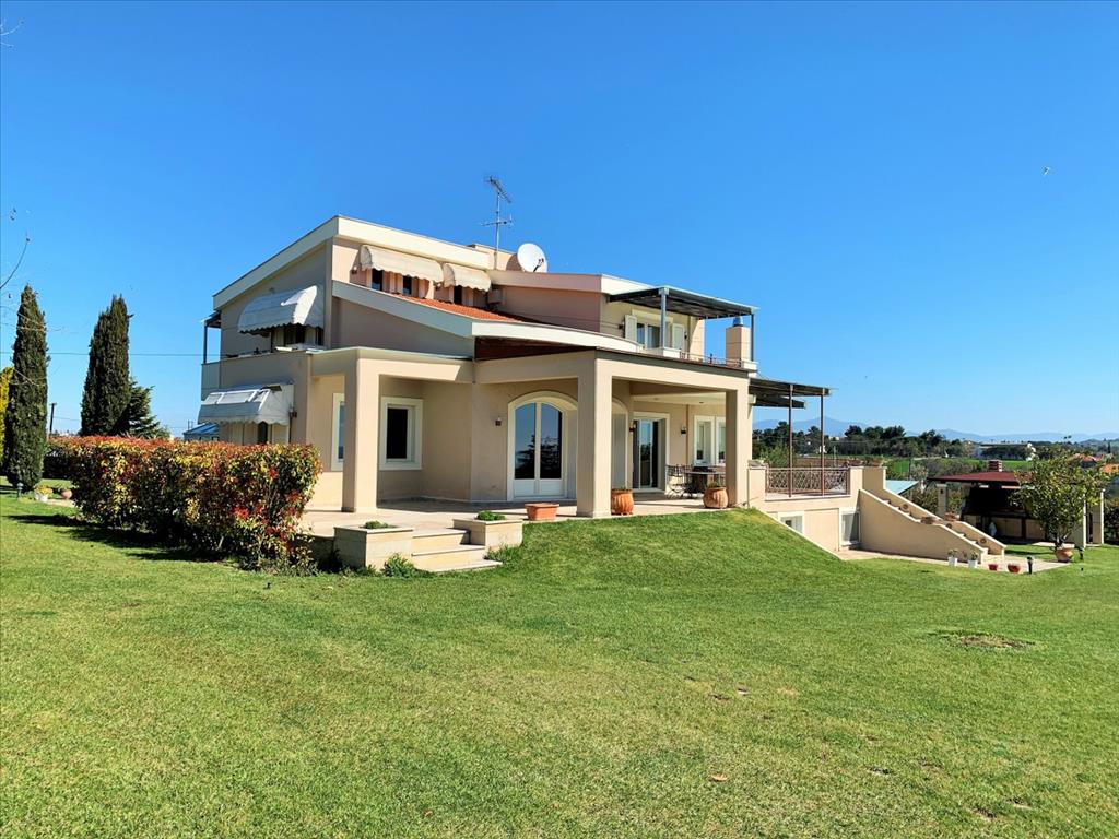 For sale 3-storey cottage with an area of 350 square meters in the suburbs of Thessaloniki. The basement consists of 2 bedrooms, 2 living rooms, one kitchen, one bathroom, one storeroom. The first floor consists of one bedroom, living room, one kitchen, one bathroom. The second floor consists of 3 bedrooms, one bathroom, one shower room. The Windows offer a magnificent view of the sea. The object has solar panels for water heating, fireplace, barbecue, heating. The building is an Elevator. The object has an alarm system. To the property belongs a Parking space, garden. The nearest beach is 3 km away. There is also a possibility to build an additional 200 sq. M.