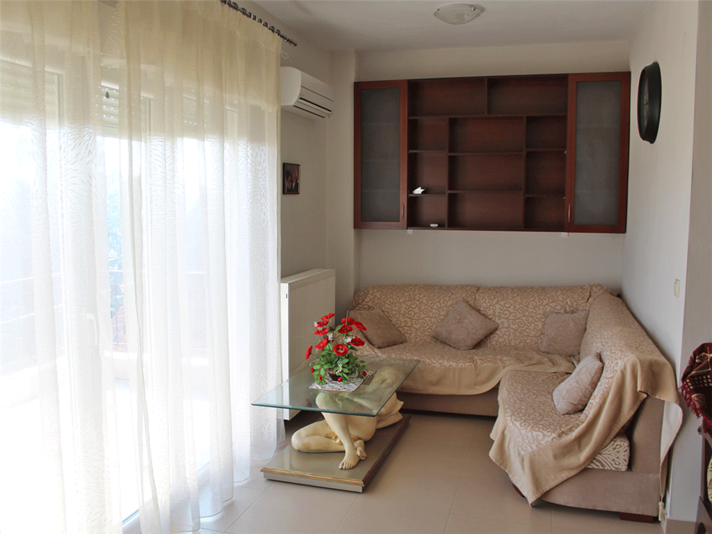 For sale apartment of 70 square meters on the Olympic Riviera. The apartment is located on the third floor and consists of 2 bedrooms, living room, one kitchen, one shower room. The Windows offer views of the sea, the mountains and the city. The object has solar panels for water heating, air conditioning, fireplace, tents, heating. The property is sold with furniture. The building is an Elevator.