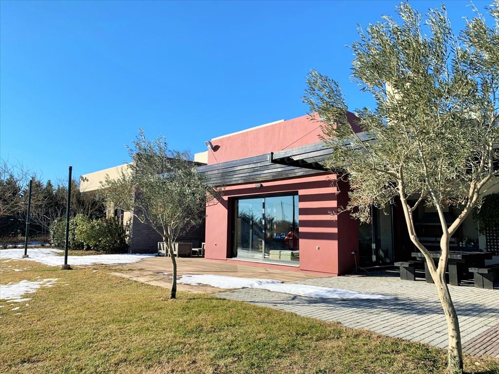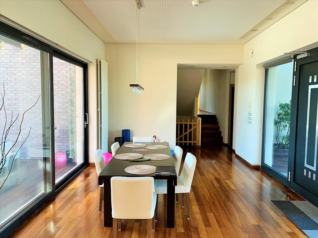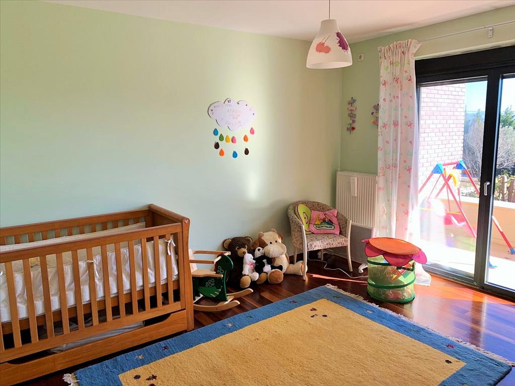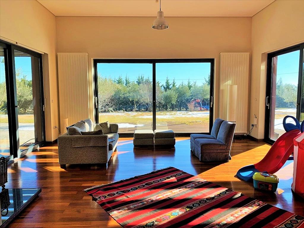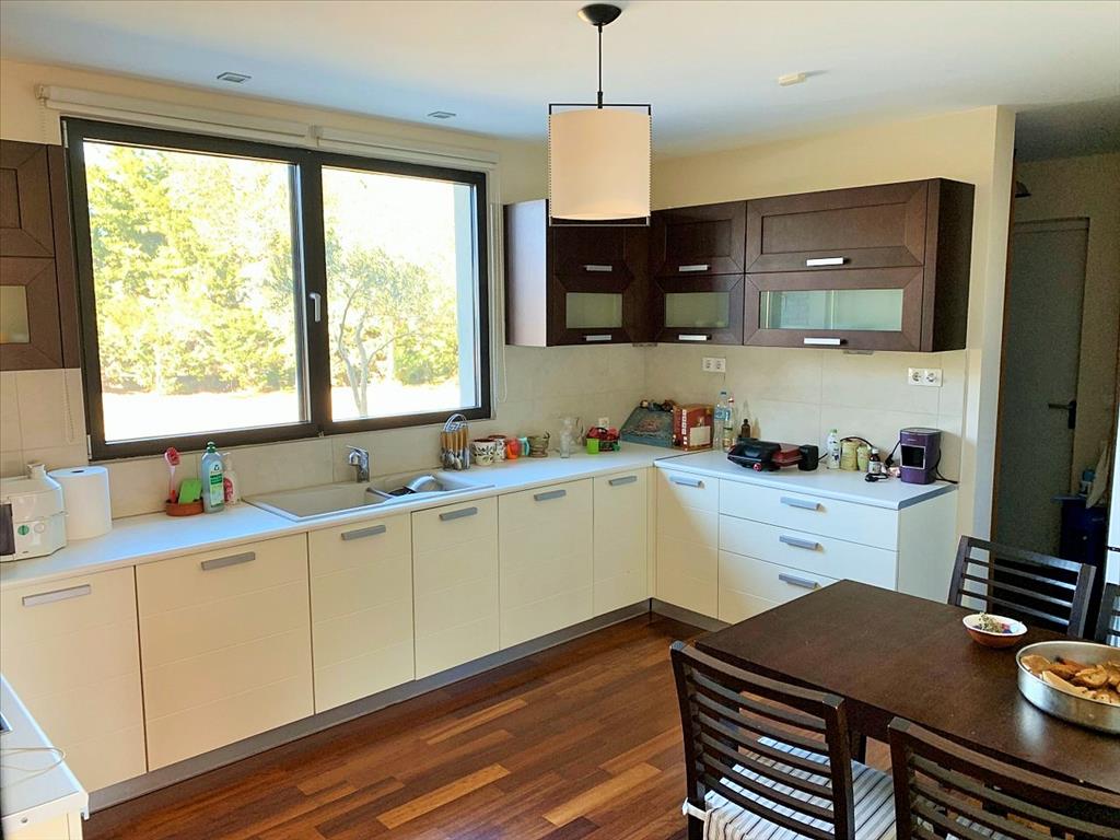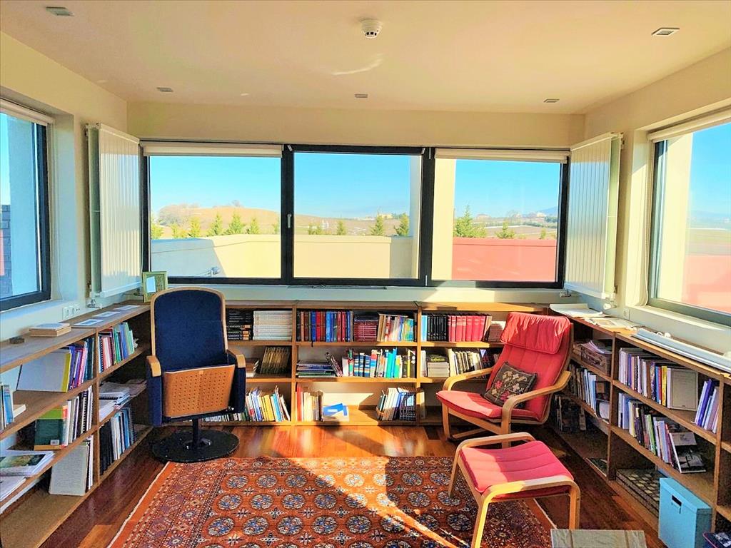 For sale 3-storey Villa with an area of 470 sq m in the suburbs of Thessaloniki. The basement consists of 2 storage rooms, one play room. The first floor consists of 4 bedrooms, living room, one kitchen, 2 bathrooms, one shower room, one pantry, one walk-in closet. The second floor consists of one office. The Windows offer views of the mountains. The object has solar panels for water heating, fireplace, air conditioning, barbecue, heating. The object has an alarm system. To the property belongs a Parking place, garden, garage.