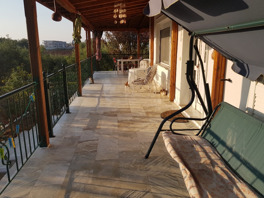 For sale 1-storey house with an area of 102 sqm on the Kassandra Peninsula, Halkidiki, Greece The cottage consists of 3 bedrooms, living room, one kitchen, one shower room, one bathroom. The Windows offer views of the sea, the forest. The object has a fireplace, air conditioning, awnings. The property is sold with furniture. To the property belongs a Parking space, garden.