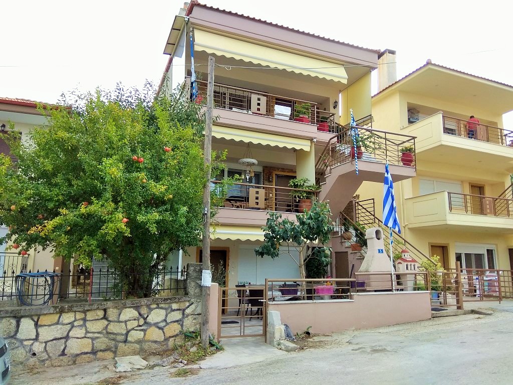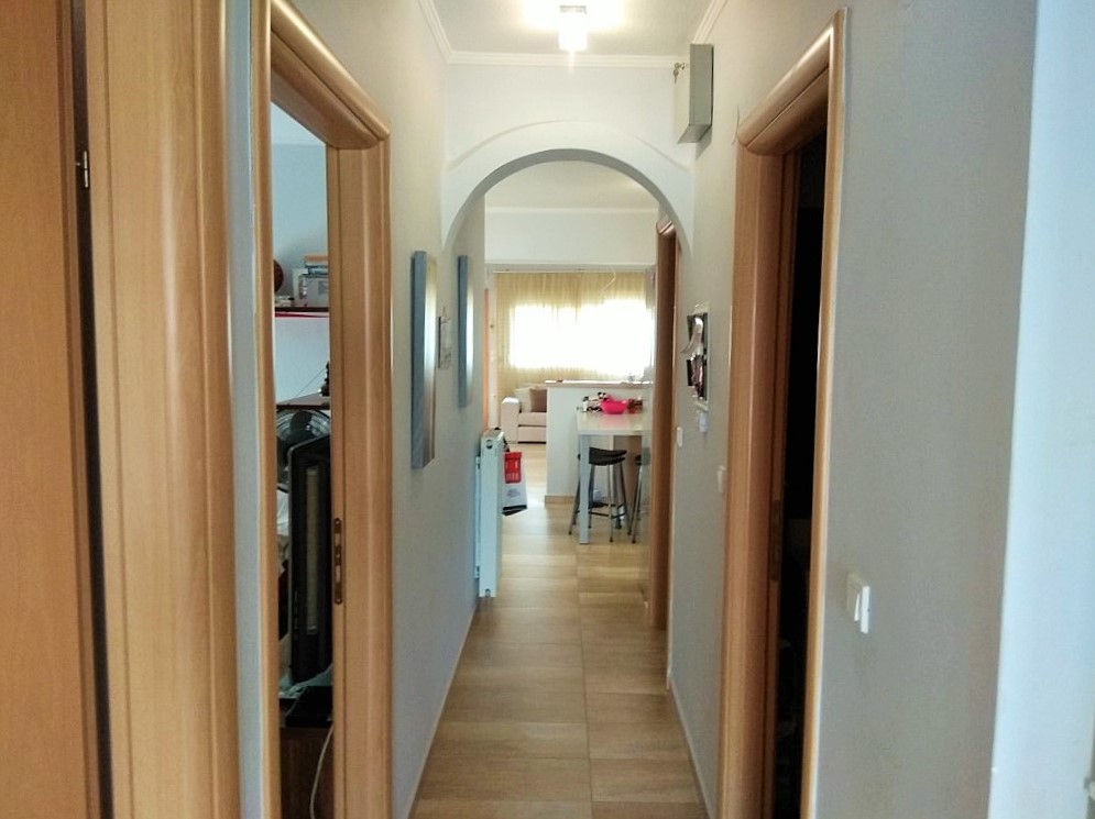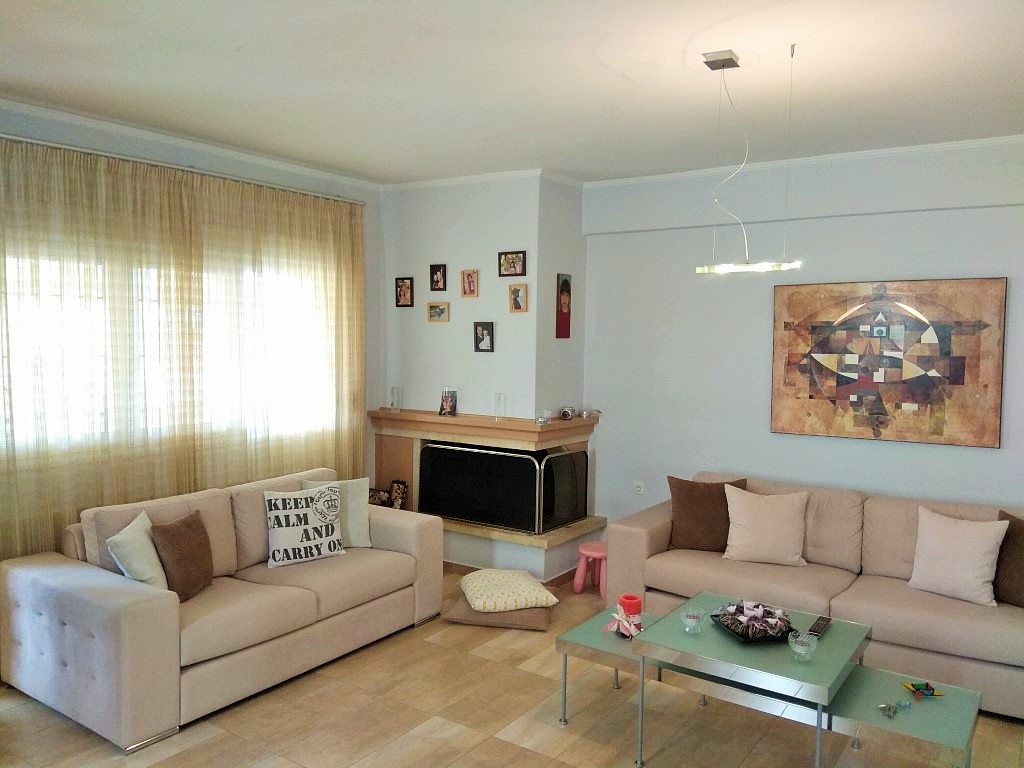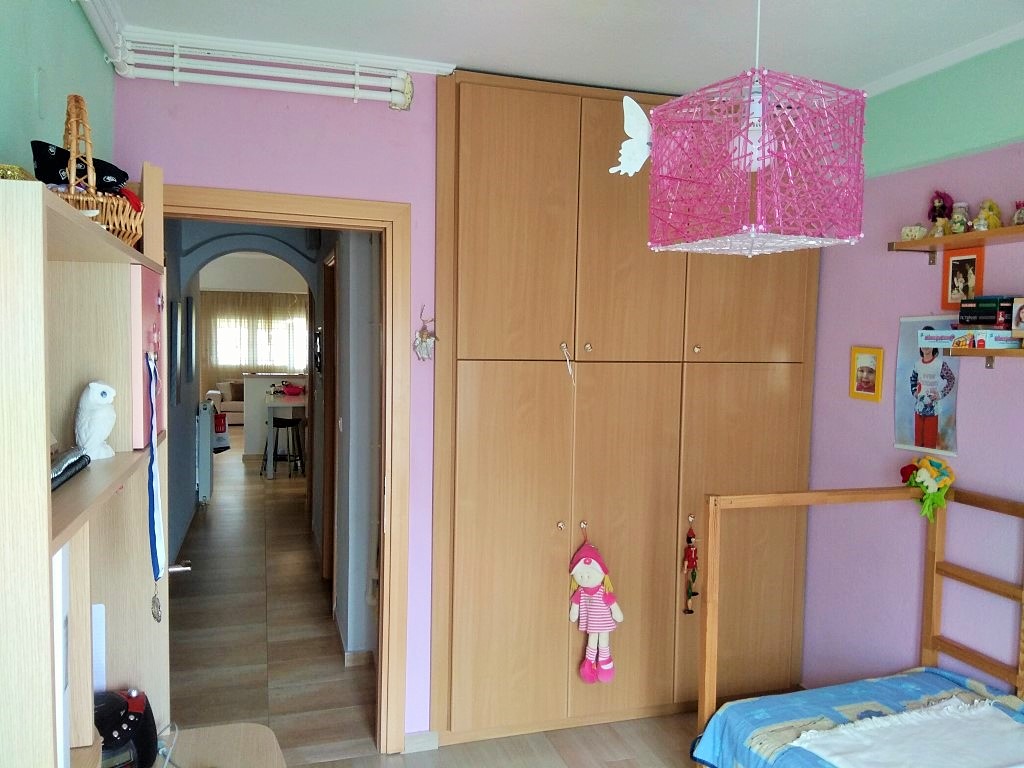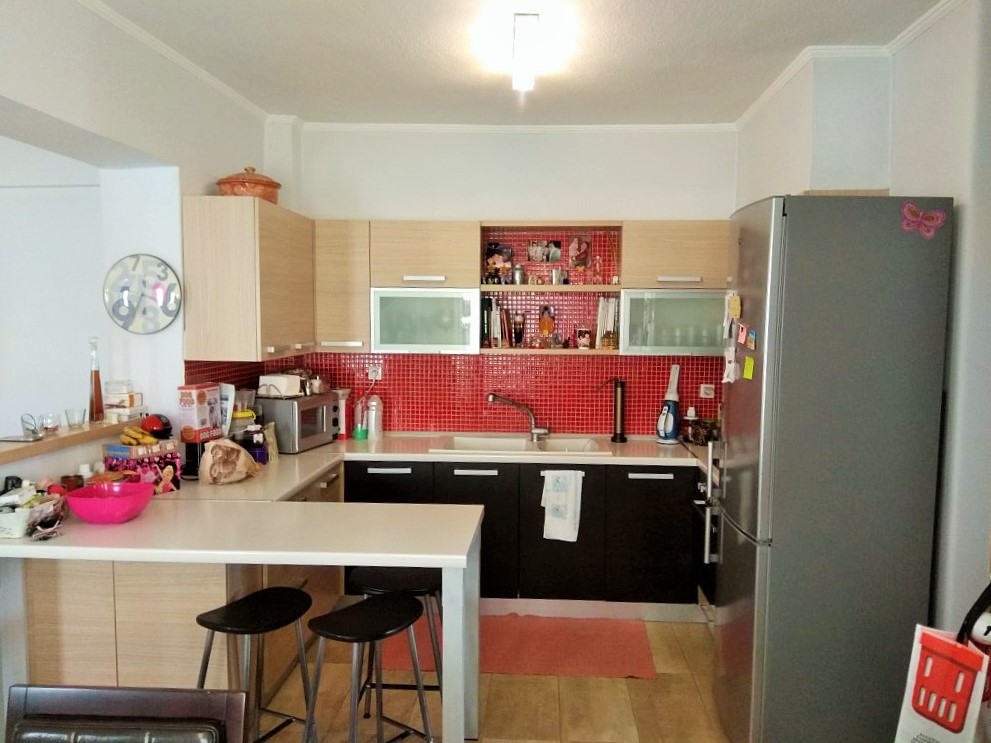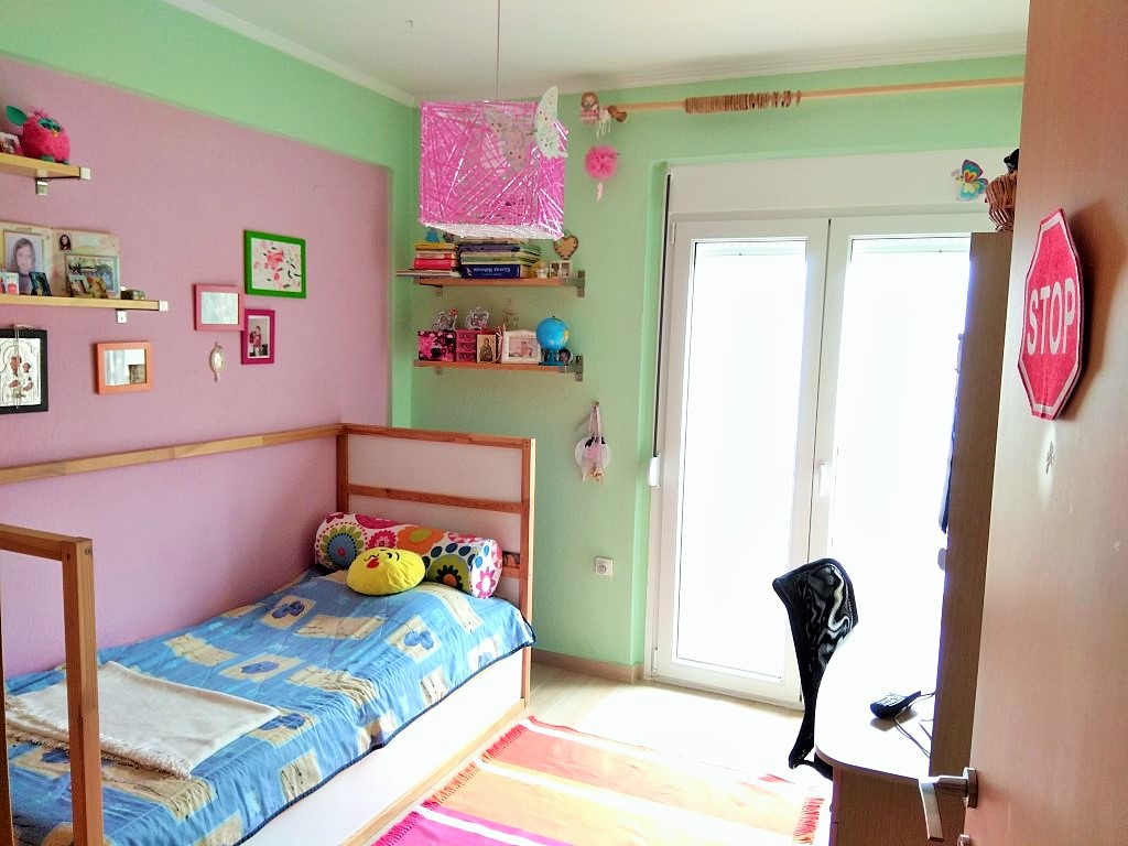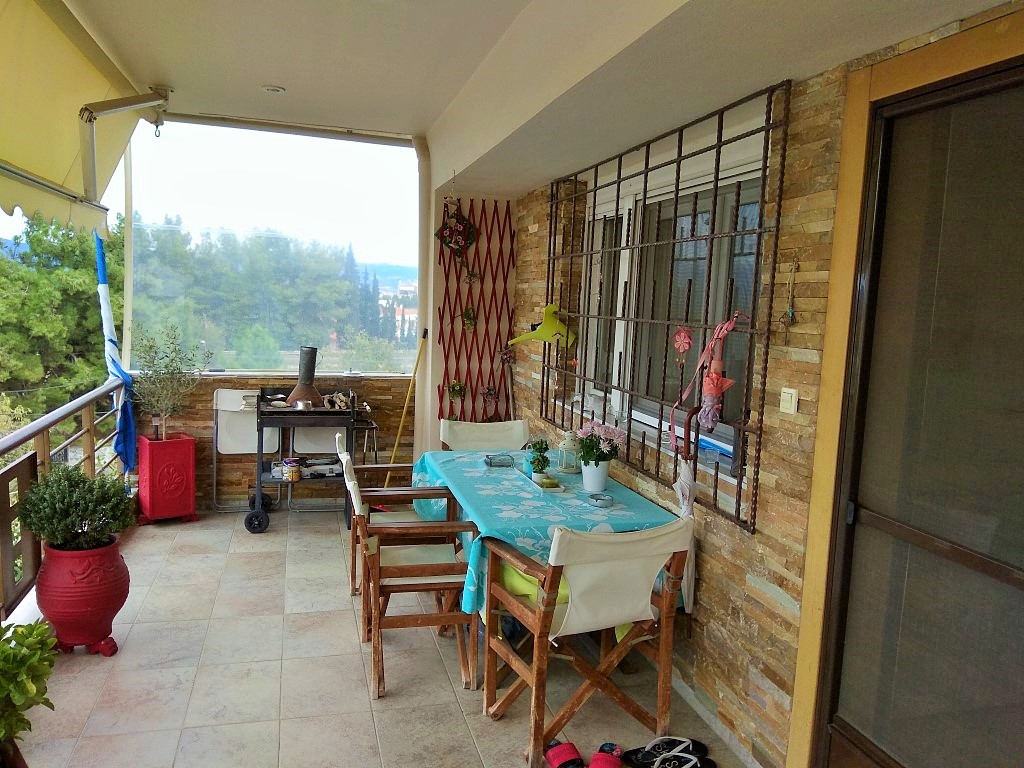 For sale apartment of 115 square meters in the suburbs of Thessaloniki. The apartment is located on the third floor and consists of 3 bedrooms, living room with kitchen, one bathroom, one bathroom. The Windows offer views of the mountains, the forest. The object has solar panels for water heating, fireplace, air conditioning, awnings, barbecue, heating. The property is sold with furniture. The object has an alarm system.