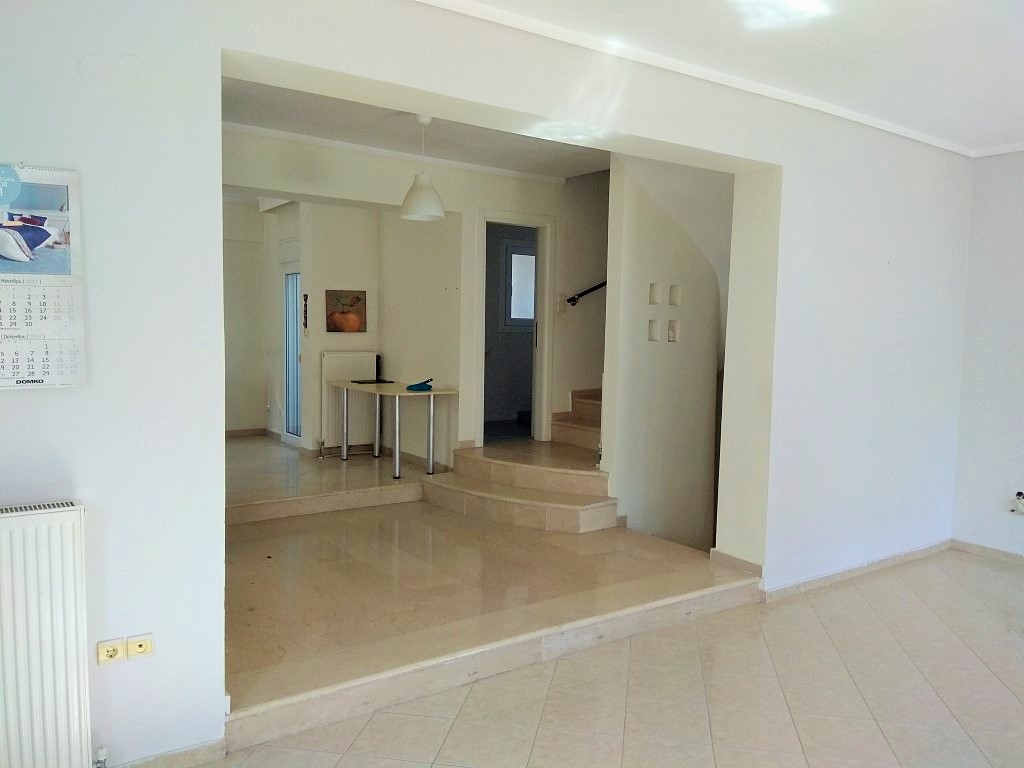 Sale house area of 210 sqm in the suburbs of Thessaloniki. The townhouse is on 3 levels. The first floor consists of one bedroom, living room with kitchen, one shower room, one pantry. The second floor consists of living room with kitchen, one shower room. The third floor consists of 3 bedrooms, one bathroom. The townhouse enjoys a corner location. The object has a fireplace, air conditioning, heating. To the property belongs a Parking space.