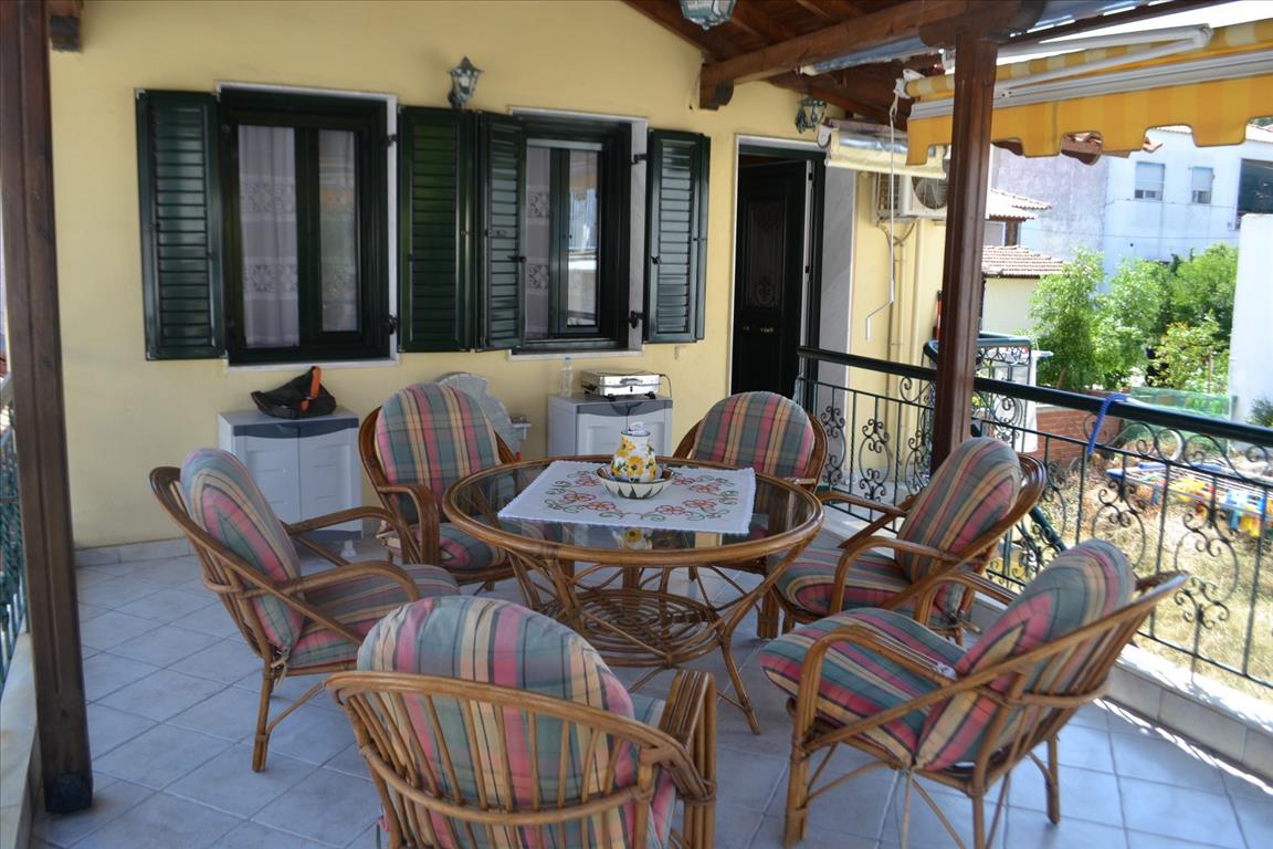 House for sale area of 75 sqm on the Kassandra Peninsula, Halkidiki, Greece Townhouse is on 2 levels. The first floor consists of living room with kitchen, one shower room. The second floor consists of living room with kitchen, one shower room. The object has a fireplace, air conditioning, heating. The property is sold with furniture.