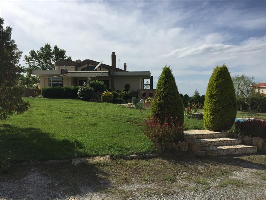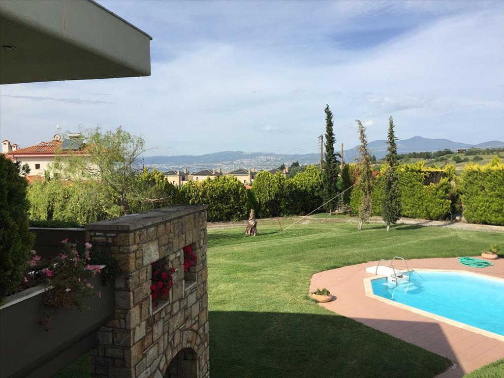 Sale 4-storey Villa with area of 440 sq m in Thessaloniki. The basement consists of one bedroom, living room with kitchen, one bathroom, one storeroom. The first floor consists of 2 storerooms. The second floor consists of 3 bedrooms, living room with kitchen, one bathroom, one shower room. The third floor consists of one bedroom, living room, one shower room. The Windows offer a magnificent view of the sea, the mountains, the city, the forest. The object has a fireplace, air conditioning, awnings, barbecue, heating. The property is sold with furniture. The object has an alarm system. To the property belongs a Parking place, garden, garage. The on-site swimming pool personal use.