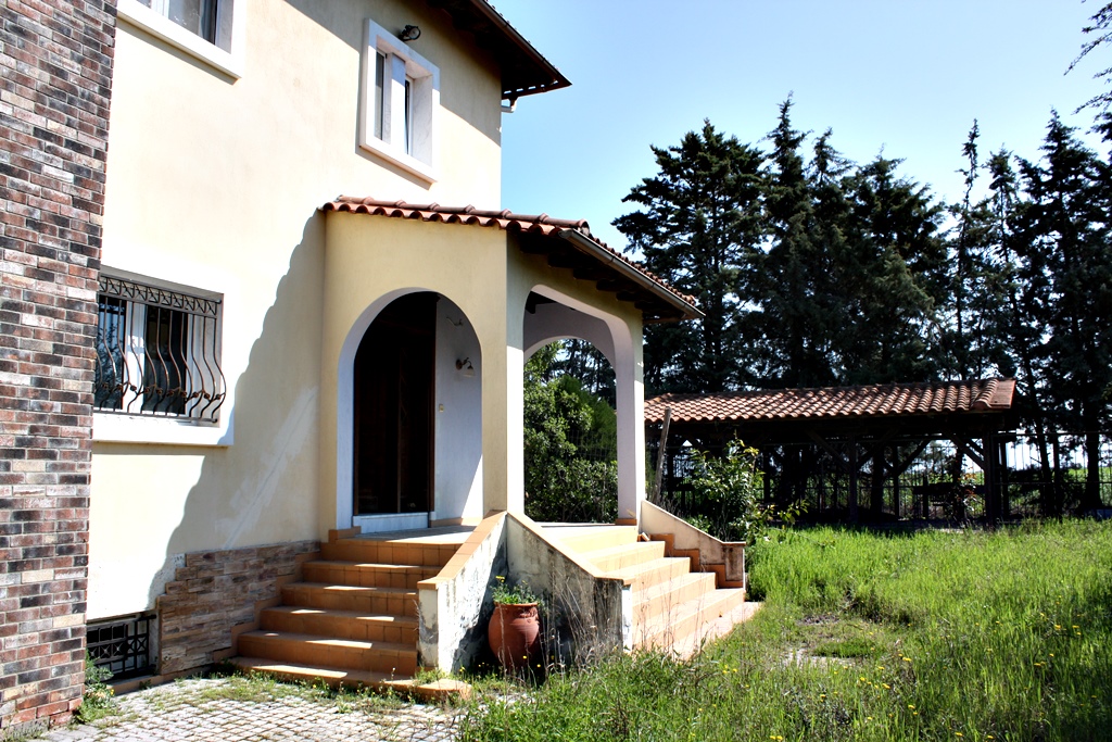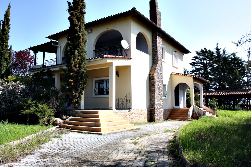 For sale 3-storey Villa of 320 sq m in the suburbs of Thessaloniki. The basement consists of a living room, one kitchen, one shower room, one pantry. The first floor consists of one bedroom, living room, one kitchen, one bathroom. The second floor consists of 3 bedrooms, one bathroom, one shower room. The object has a fireplace, barbecue, heating. To the property belongs a Parking space, garden.