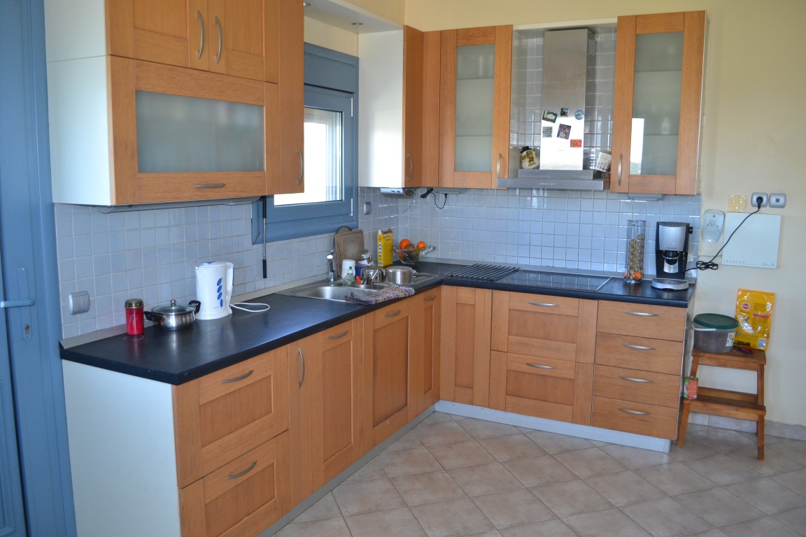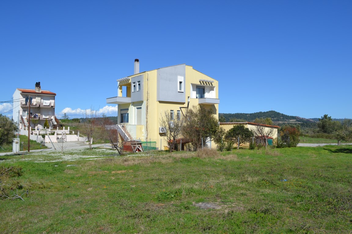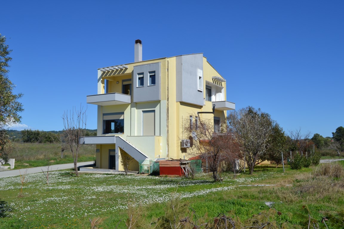 For sale 3-storey cottage with an area of 230 sqm on the Kassandra Peninsula, Halkidiki, Greece The first floor consists of the living room. The second floor consists of one bedroom, living room, one kitchen, one shower room. The third floor consists of 3 bedrooms, 2 bathrooms, one storeroom. The Windows offer views of the sea, the mountains, the city, the forest. The object has a fireplace, air conditioning, heating. The property is sold with furniture. To the property belongs a Parking space, garden.
