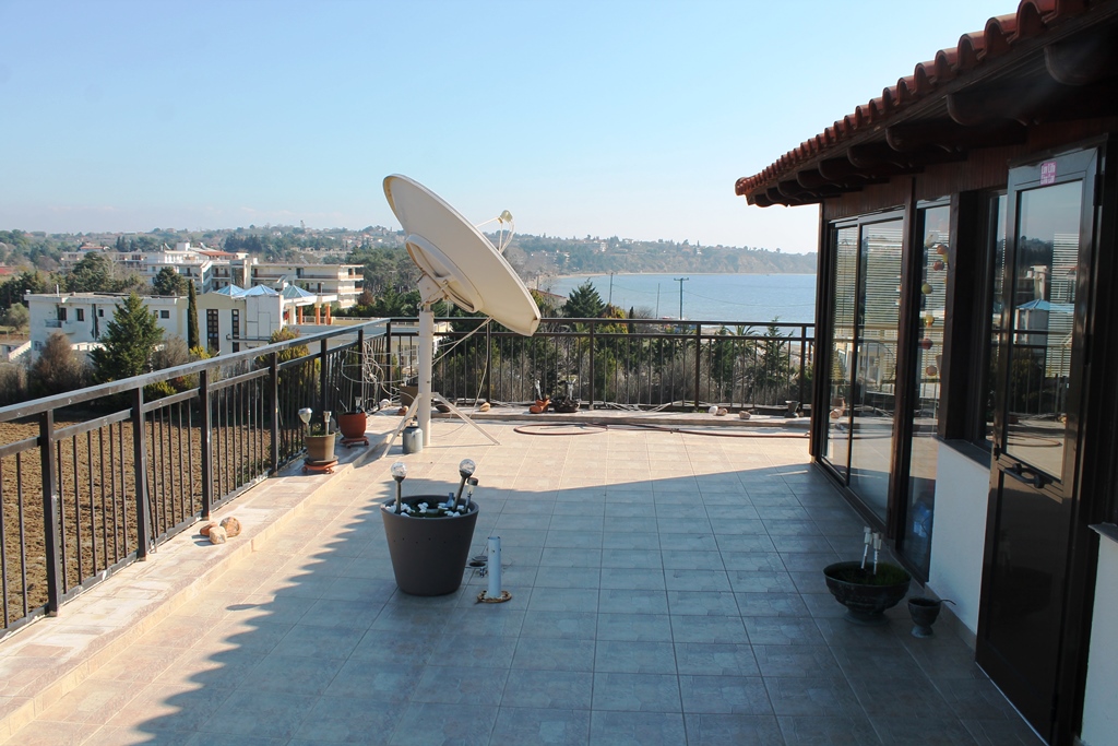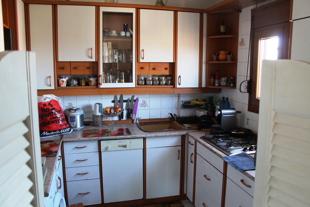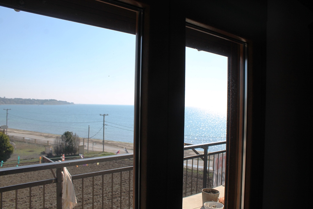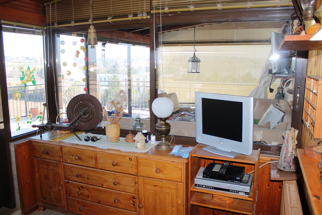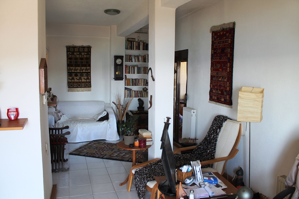 For sale apartment of 76 square meters in the suburbs of Thessaloniki. The apartment is located on the fifth floor and consists of one bedroom, living room, one kitchen, one bathroom. The apartment has a corner location. The Windows offer a magnificent view of the sea. The object is heated. The property is sold with furniture. To the property belongs a Parking space, garden.