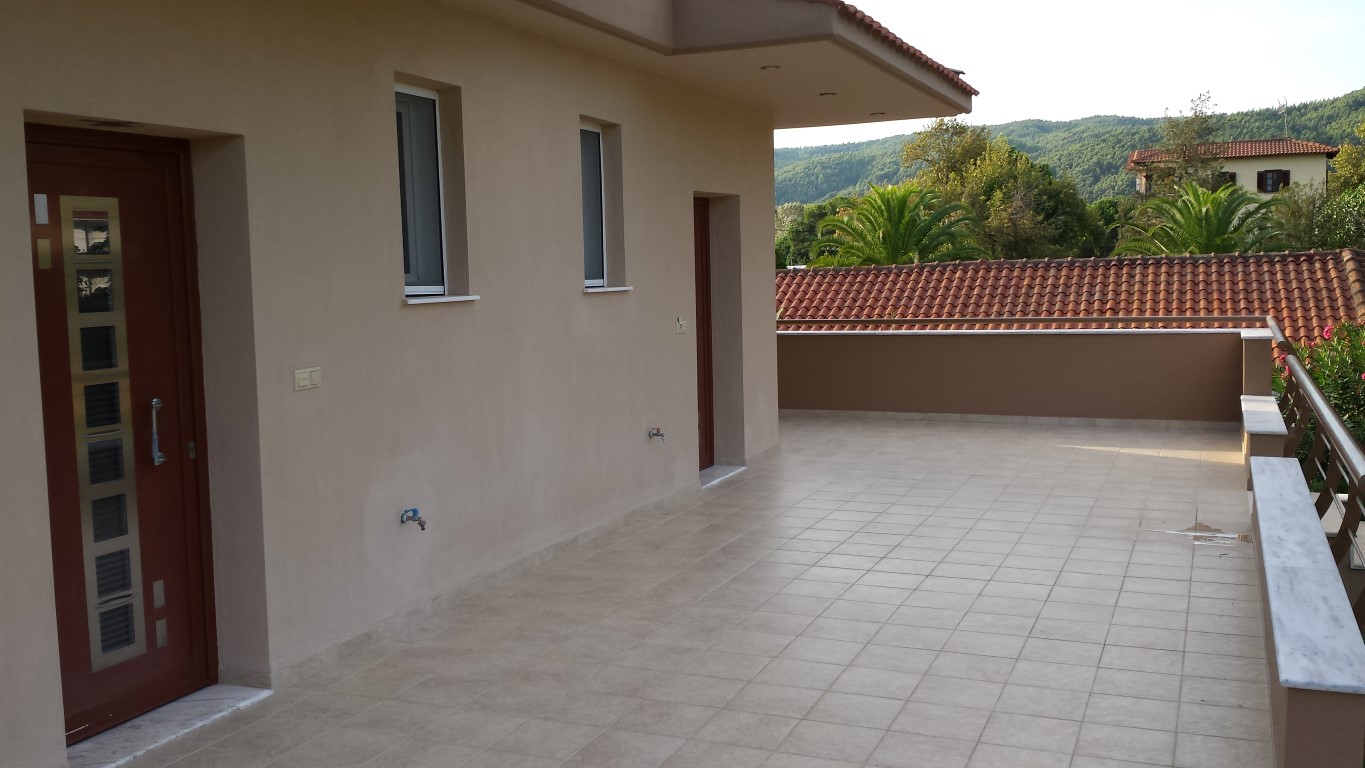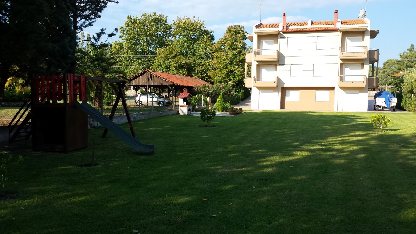 Sale townhouse of 180 sqm in Sithonia, Halkidiki, Greece The townhouse is on 3 levels. The first floor consists of one bedroom, living room with kitchen, one shower room. The second floor consists of living room with kitchen, one bathroom. The third floor consists of 2 bedrooms, one shower room. The townhouse enjoys a corner location. The Windows offer views of the sea, the mountains and the forest. The object has a fireplace, heating. The property is sold with furniture. The object has an alarm system. To the property belongs a Parking space, garden.