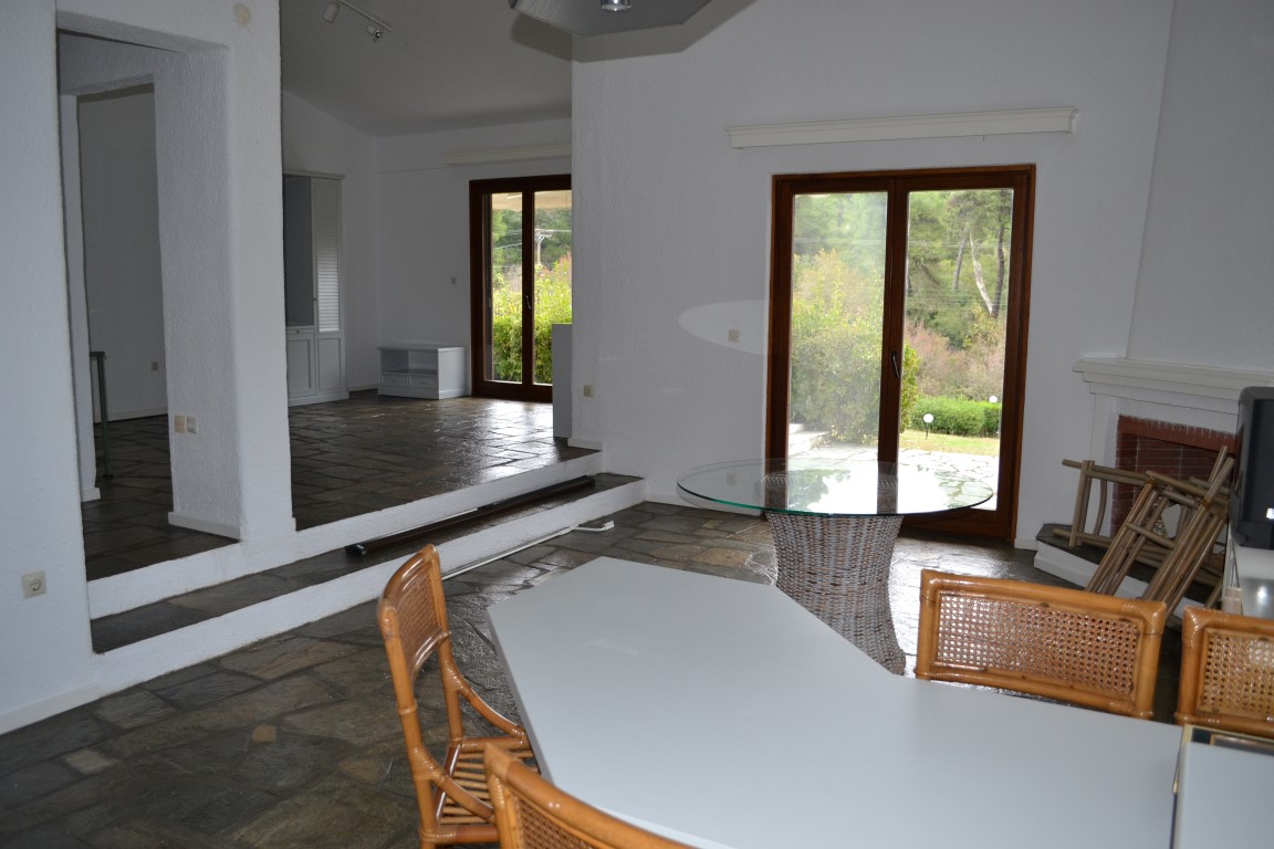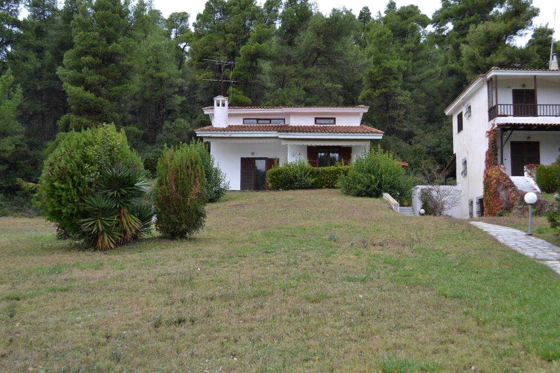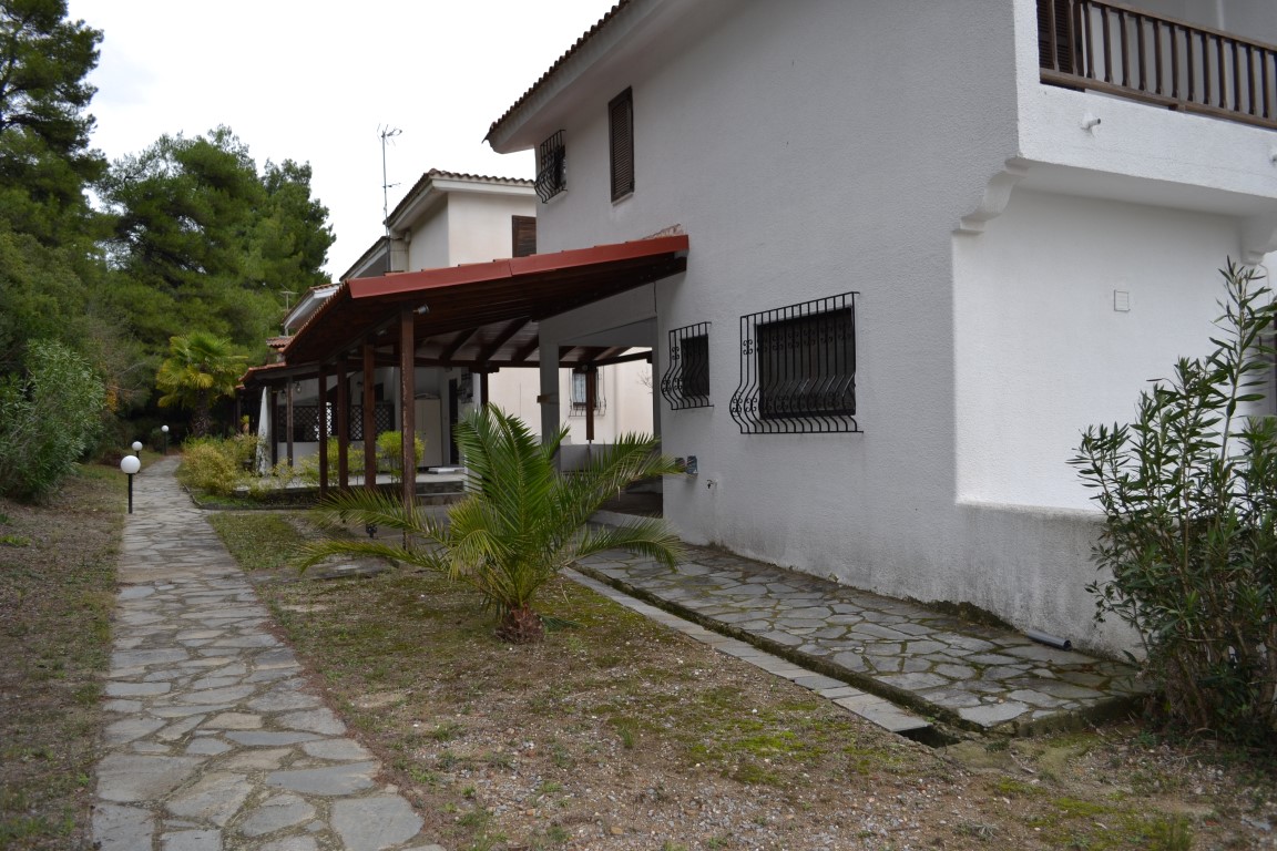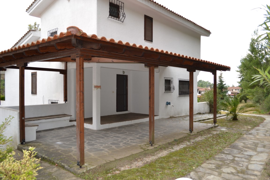 For sale 3-storey cottage of 150 sqm on the Kassandra Peninsula, Halkidiki, Greece The basement consists of 2 bedrooms, living room, one shower room, one pantry. The first floor consists of living room with kitchen, living room, one bathroom. The second floor consists of one bedroom, one shower room. The Windows offer views of the mountains, the forest. The object has a fireplace, awnings. To the property belongs a Parking space, garden.