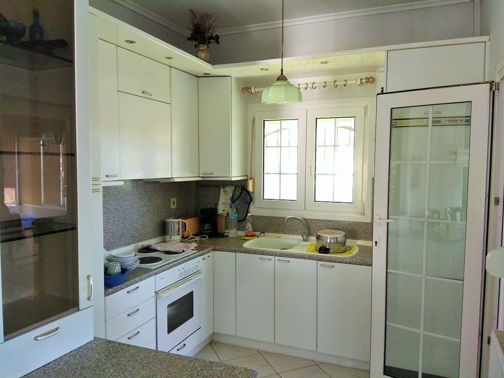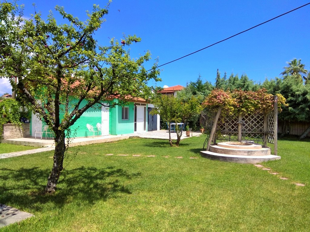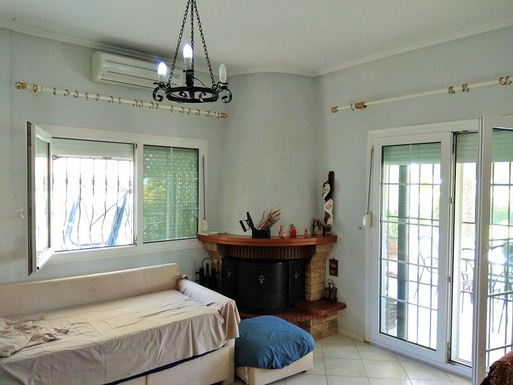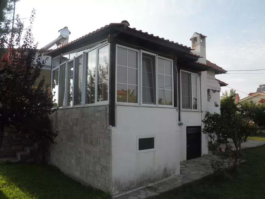 For sale 1-storey house of 120 square meters in Chalkidiki. The cottage consists of 3 bedrooms, living room with kitchen, one bathroom. The Windows offer views of the sea. The object has solar panels for water heating, fireplace, air conditioning, awnings, barbecue, heating. The property is sold with furniture. To the property belongs a Parking space.
