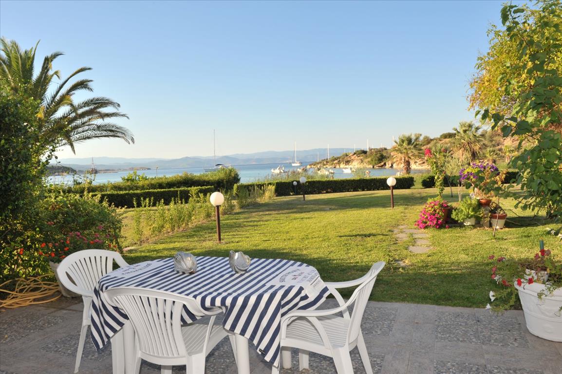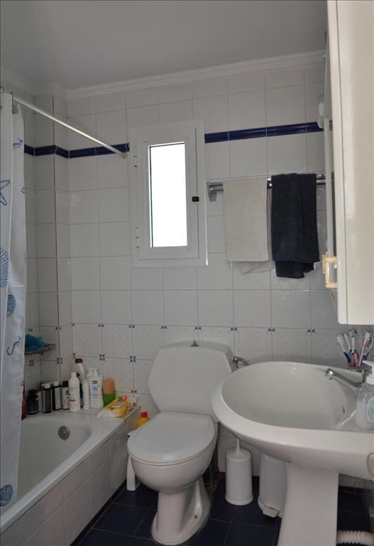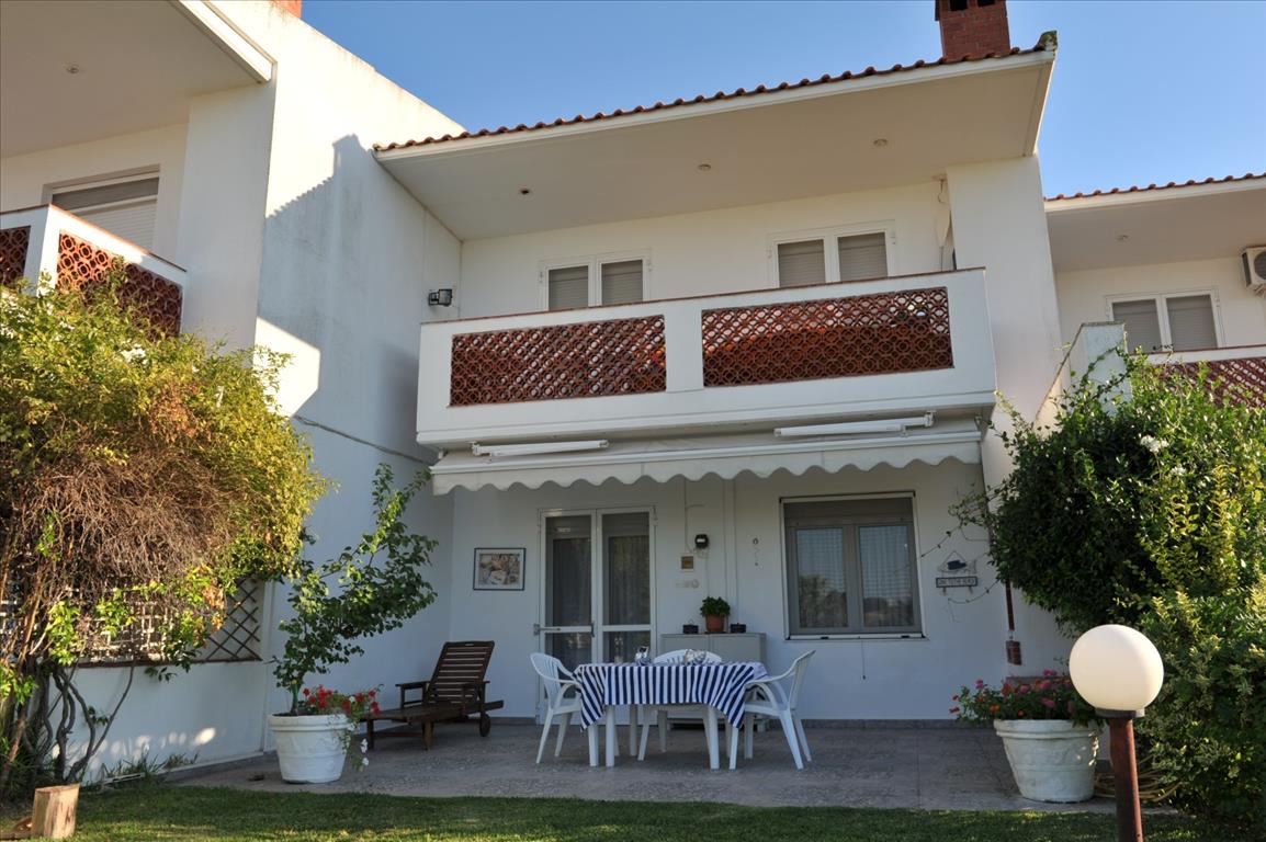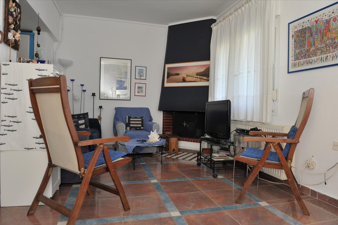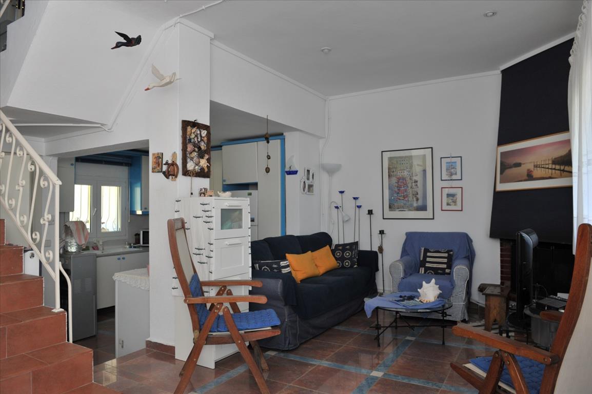 For sale townhouse with area of 80 sqm in Sithonia, Halkidiki, Greece Townhouse is on 2 levels. The first floor consists of living room with kitchen, one bathroom. The second floor consists of 3 bedrooms, one shower room. The Windows offer a magnificent view of the sea, the mountains and the forest. The object has a fireplace, air conditioning, awnings, barbecue, heating. The property is sold with furniture. To the property belongs a Parking space, garden.