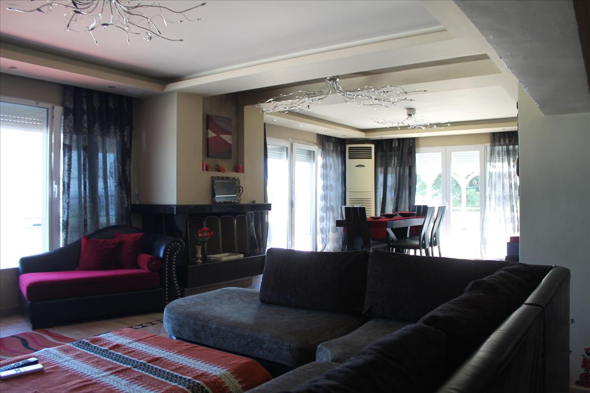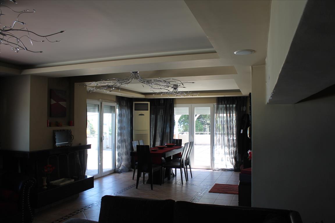 Apartment for sale 210 sq. m. in Kassandra, Halkidiki, Greece The apartment is located on the second floor and consists of 3 bedrooms, living room with kitchen, living room, 3 shower rooms. The Windows offer views of the sea. The object has solar panels for water heating, fireplace, air conditioning. The property is sold with furniture. The object has an alarm system. To the property belongs a Parking space.