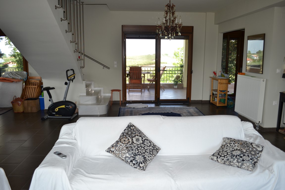 For sale 3-storey cottage with an area of 175 sq. meters in Chalkidiki. The first floor consists of one storeroom. The second floor consists of one bedroom, living room with kitchen, one shower room. The third floor consists of one bedroom, one bathroom, one storeroom. The Windows offer views of the mountains, the forest. The object has a fireplace, barbecue, heating. To the property belongs a Parking place, garden, garage.