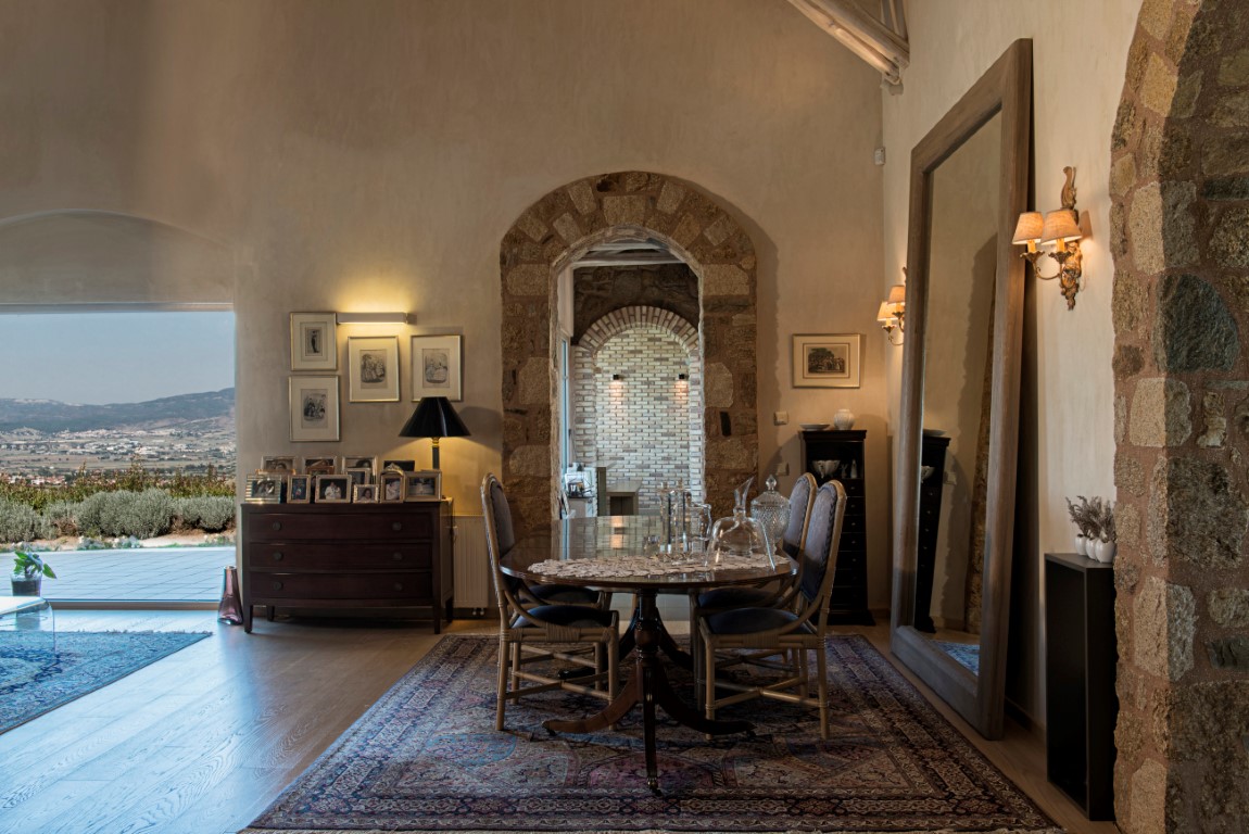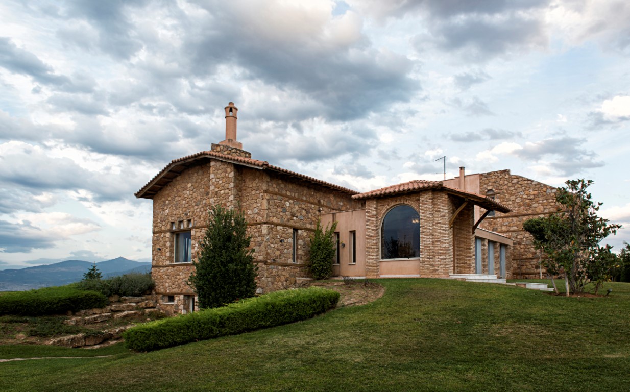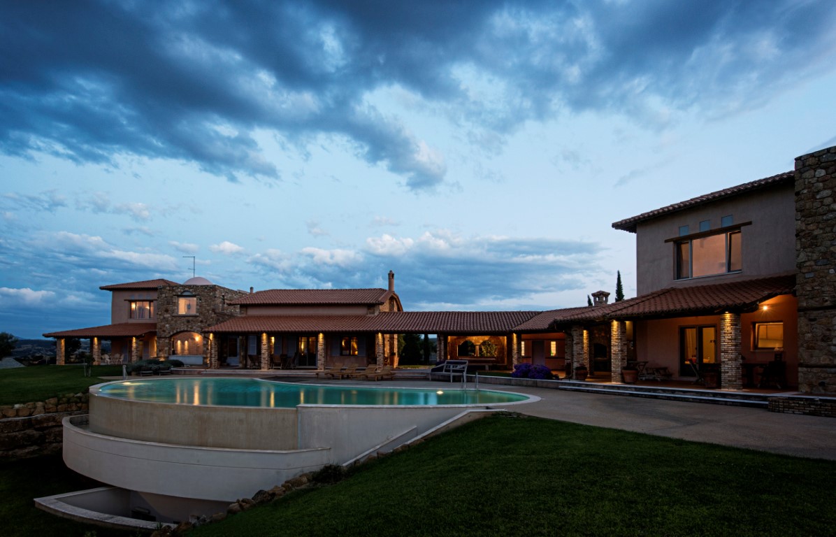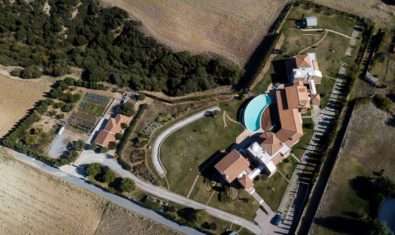 Sale Villa area of 1700 sq m in the suburbs of Thessaloniki. The Windows offer a magnificent view of the sea, the mountains, the city, the forest. The object has a fireplace, air conditioning, awnings, barbecue, heating. The property is sold with furniture. The building is an Elevator. The object has an alarm system. To the property belongs a Parking place, garden, garage. The on-site swimming pool personal use.