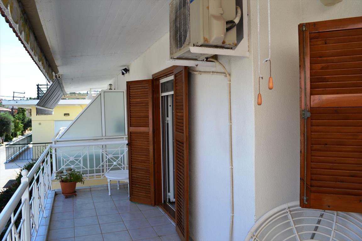 For sale apartment of 52 sqm on the Kassandra Peninsula, Halkidiki, Greece The apartment is located on the second floor and consists of 2 bedrooms, living room with kitchen, one shower room. The object has a fireplace, air conditioning, awnings. The property is sold with furniture.