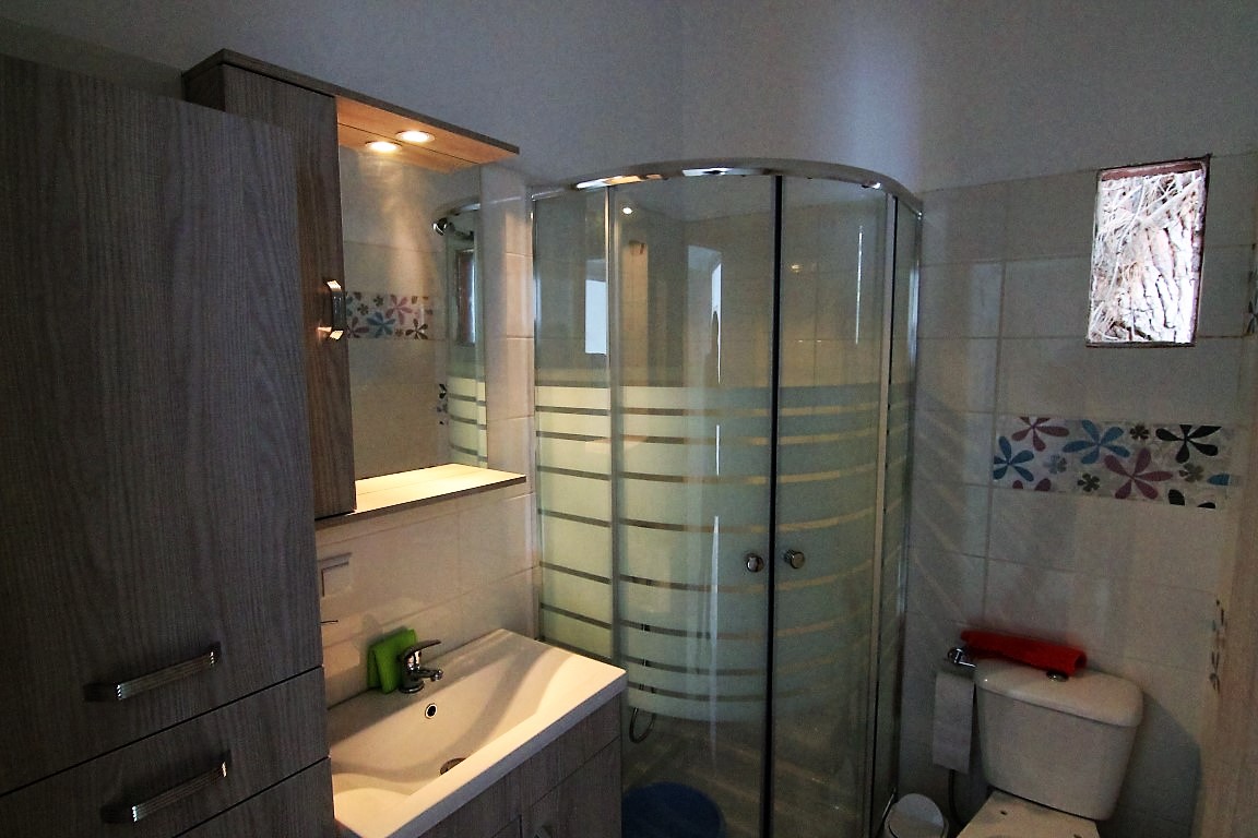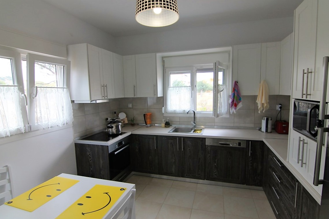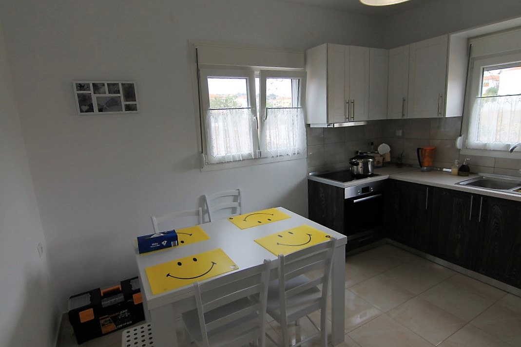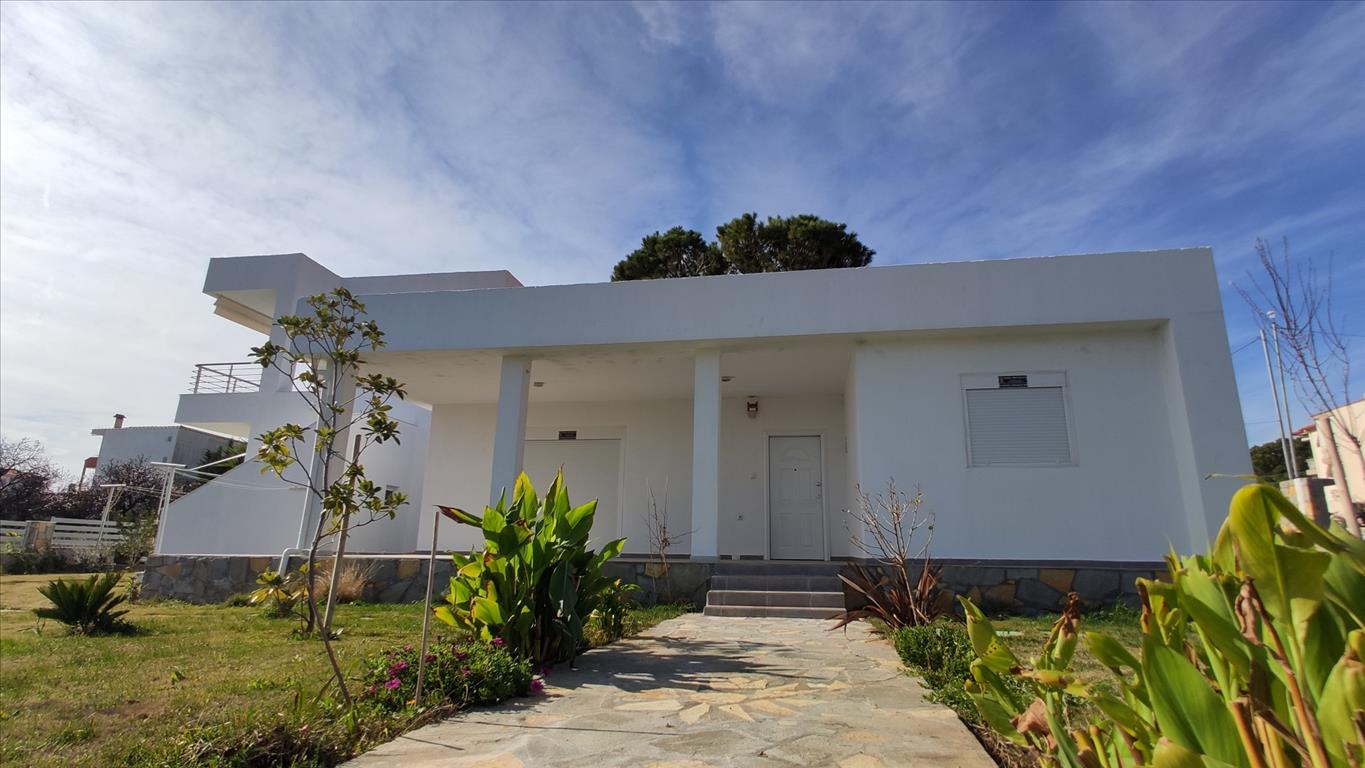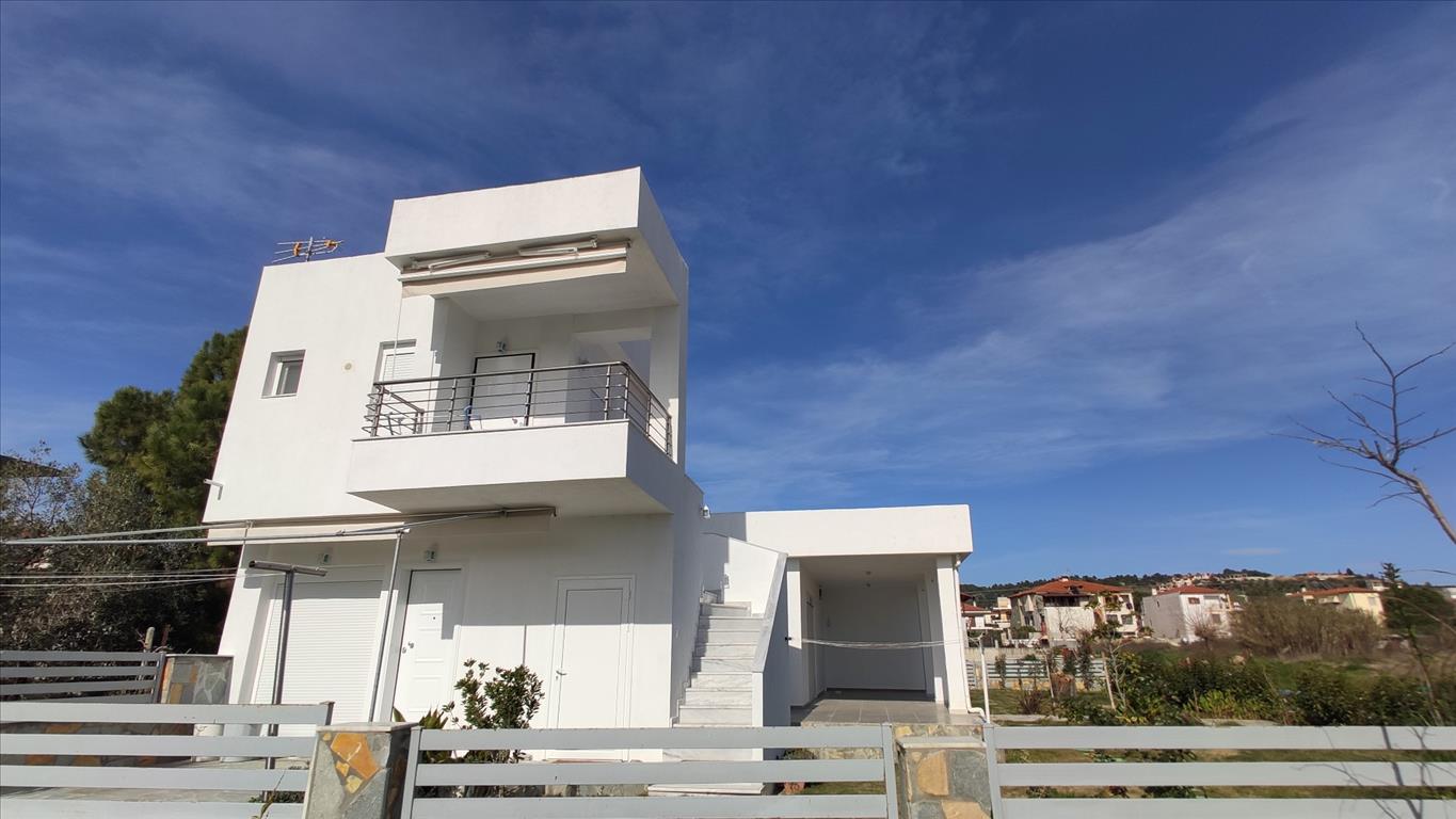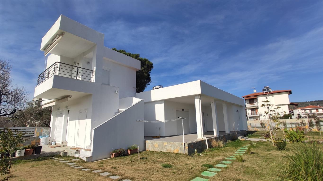 For sale 1-storey house with area of 160 sqm in Sithonia, Halkidiki, Greece The cottage consists of 4 bedrooms, 2 living rooms with kitchen, living room, one kitchen, one bathroom, 3 shower rooms. The object has solar panels for water heating. The object has an alarm system. The cottage consists of 3 separate apartments: one with 2 bedrooms, one with 1 bedroom and a Studio.