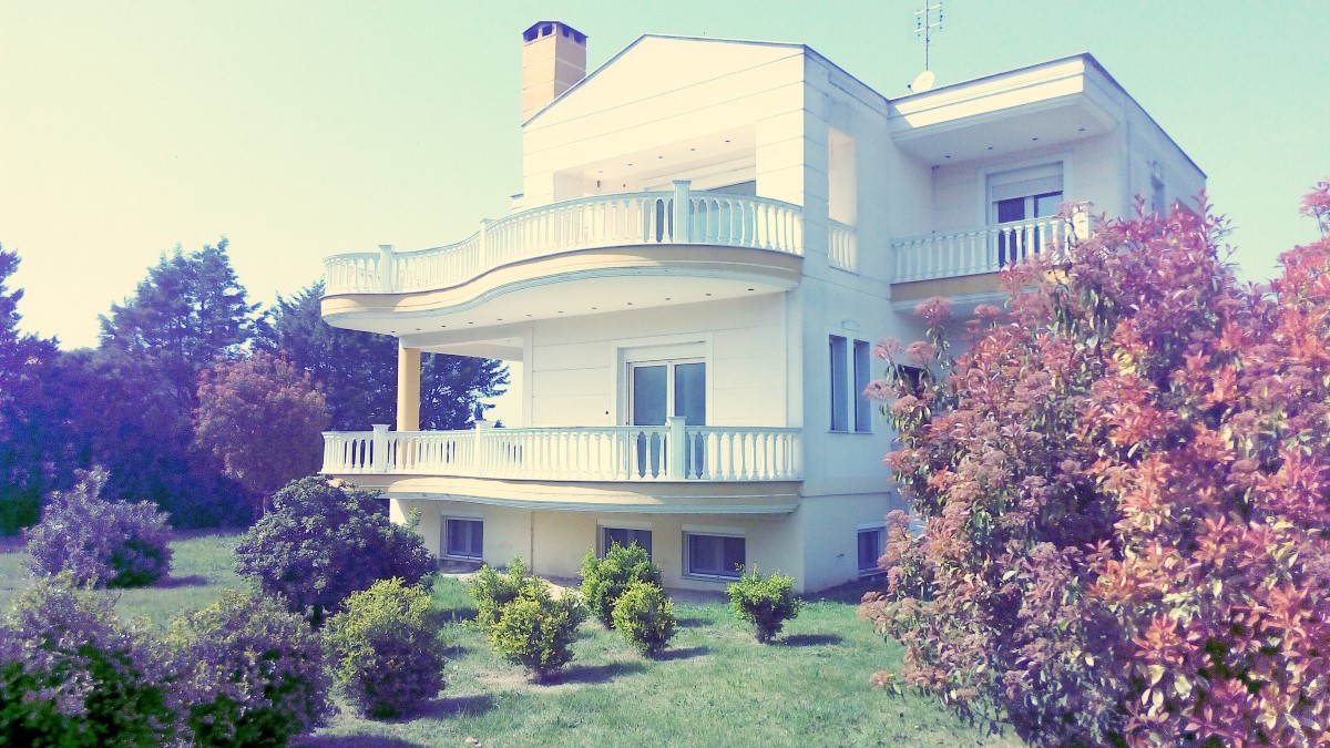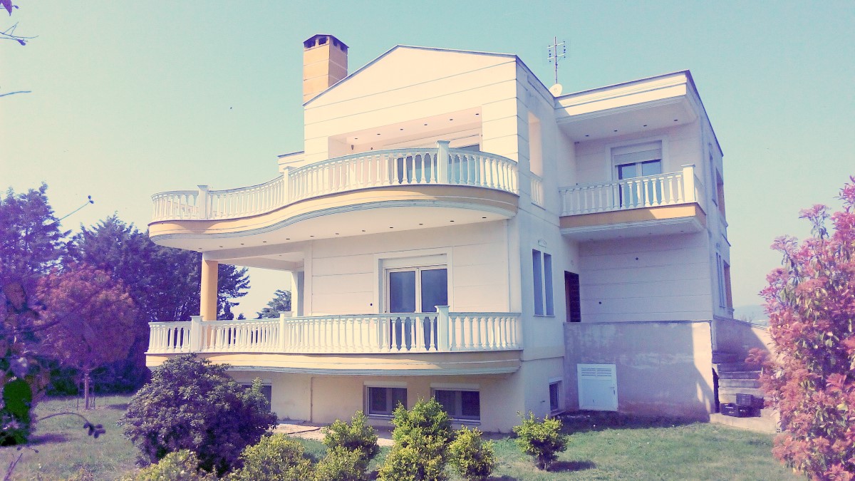 For sale 3-storey Villa with an area of 318 sq m in the suburbs of Thessaloniki. The first floor consists of 2 bedrooms, living room with kitchen, one bathroom. The second floor consists of one bedroom, living room, one kitchen, one bathroom. The third floor consists of 3 bedrooms, living room, one bathroom. The Windows offer a magnificent view of the mountains, the forest. The object has a fireplace, air conditioning, heating. The object has an alarm system. To the property belongs a Parking space, garden.