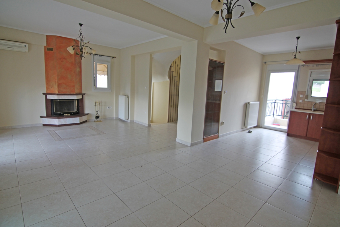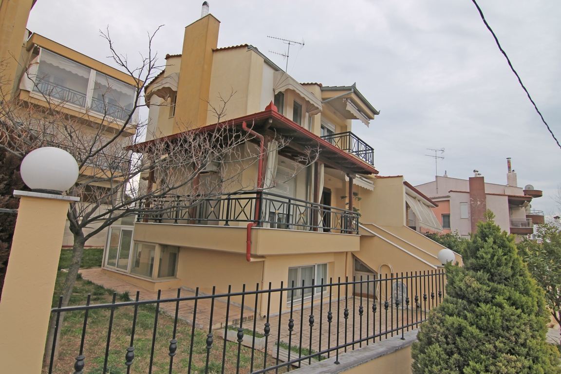 For sale 3-storey cottage with an area of 192 square meters in the suburbs of Thessaloniki. The first floor consists of one bedroom, living room with kitchen, one shower room. The second floor consists of living room with kitchen, one bathroom. The third floor consists of 3 bedrooms, one bathroom. The Windows offer views of the sea. The object has a fireplace, awnings. The object has an alarm system. To the property belongs a Parking space.