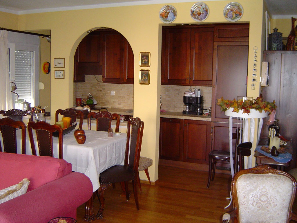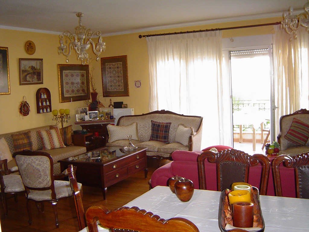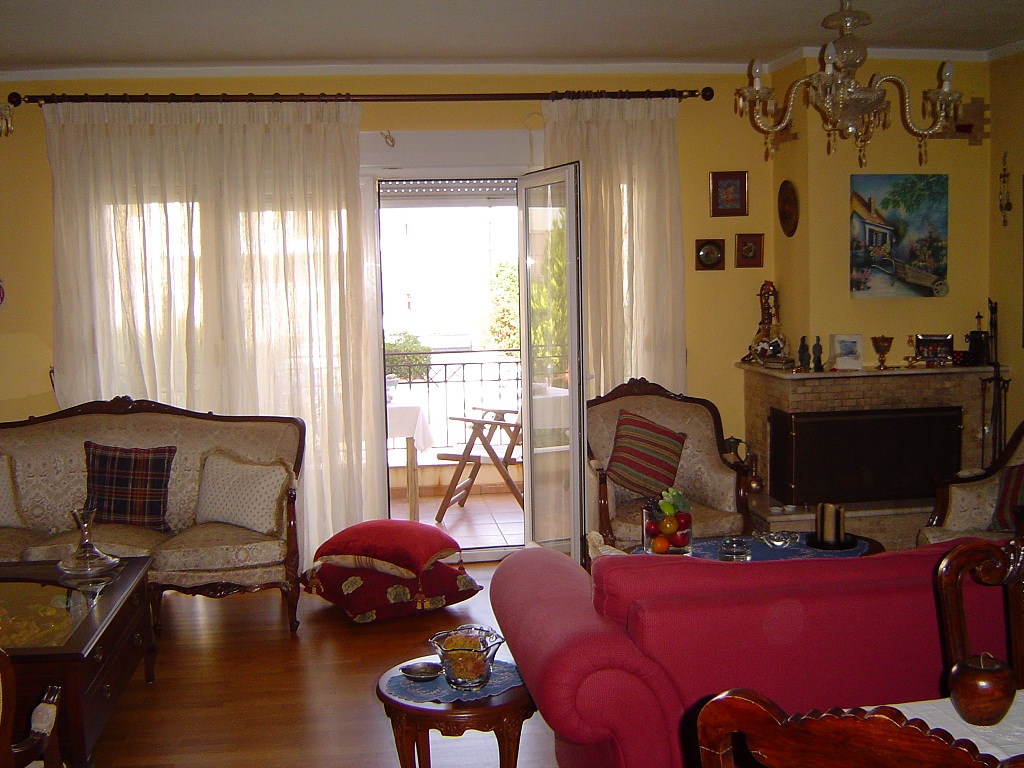For sale apartment with area of 117 sq m in the suburbs of Thessaloniki. The apartment is located on the third floor and consists of 2 bedrooms, living room, one kitchen, 2 bathrooms. The Windows offer views of the sea. The object has a fireplace, air conditioning, heating. The property is sold with furniture. The building is an Elevator. The object has an alarm system. To the property belongs a Parking space, garden.