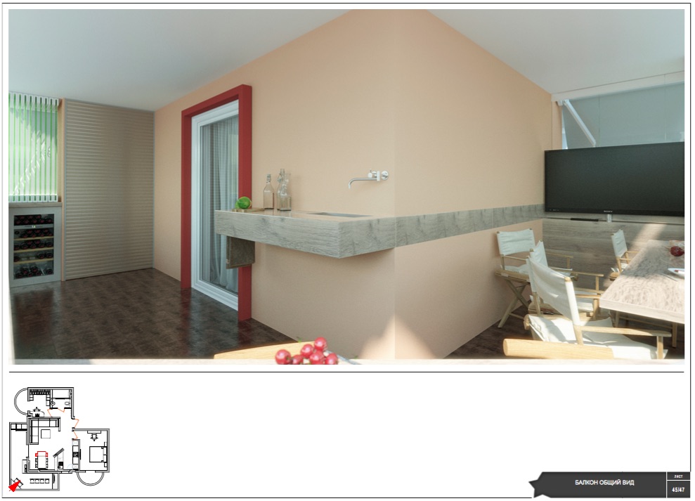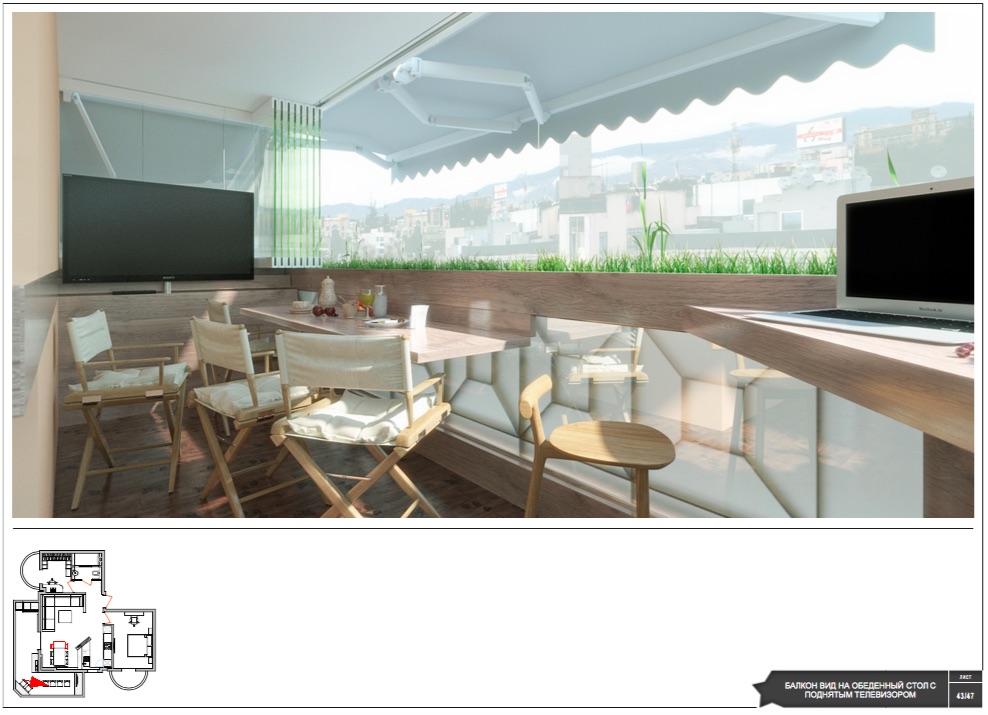 For sale apartment of 85 square meters in Thessaloniki. The apartment is located on the second floor and consists of 2 bedrooms, living room with kitchen, one shower room. There are 3 balconies - 1 big corner and 2 smaller. Along with the apartment is sold finished design project. The projects include detailed drawings, layout, selection of materials and visualization.