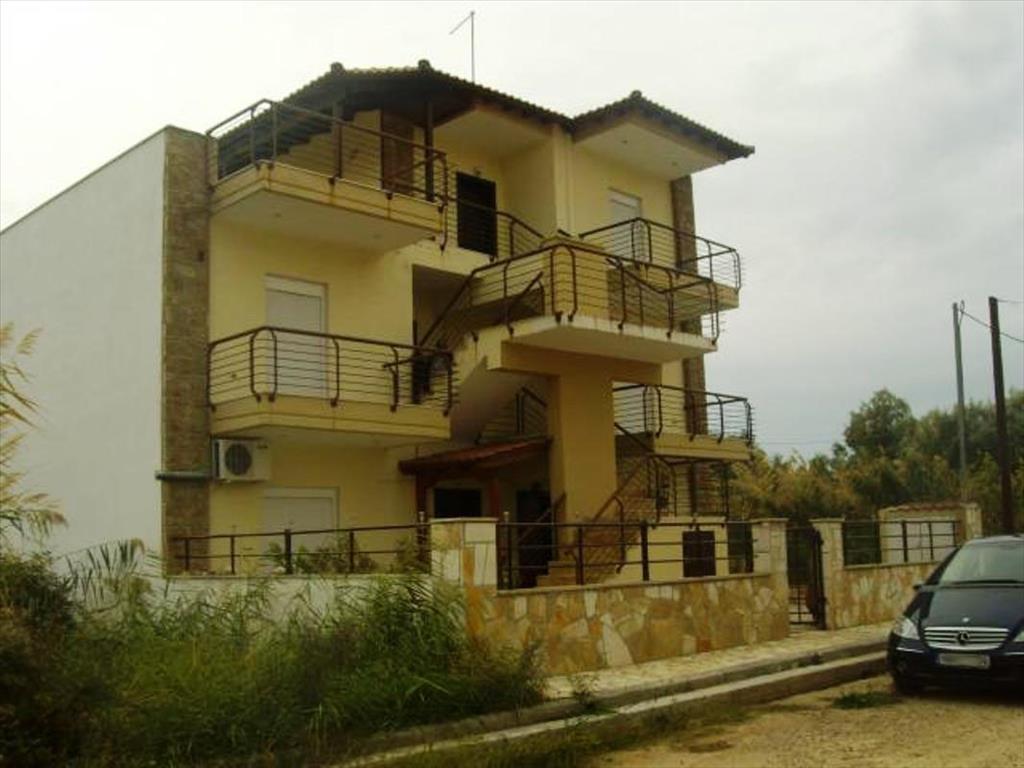 For sale apartment with an area of 86 square meters in Chalkidiki. The apartment is located on the third floor and consists of 2 bedrooms, living room with kitchen, one bathroom. The Windows offer views of the sea.