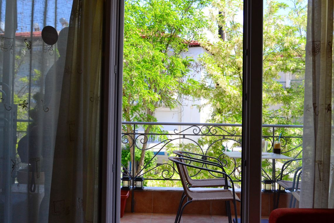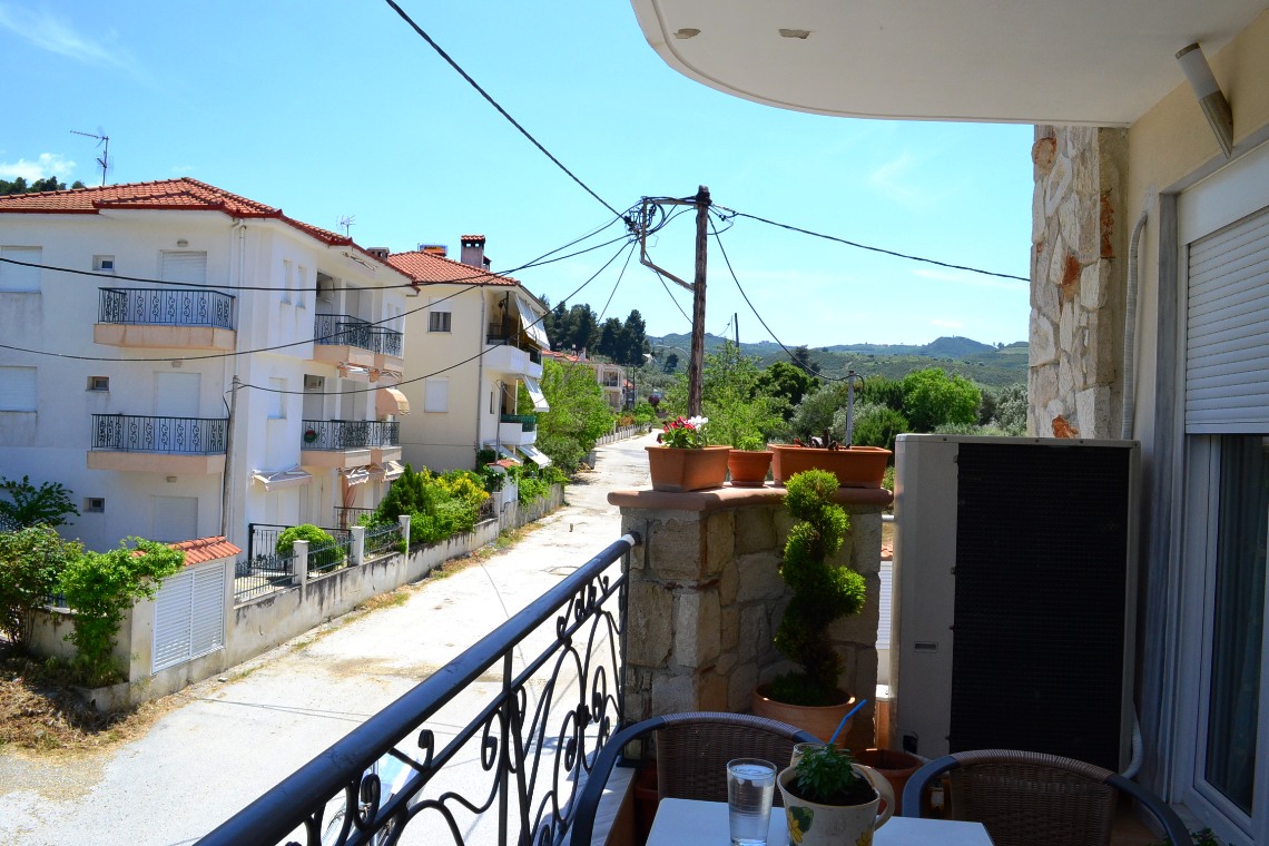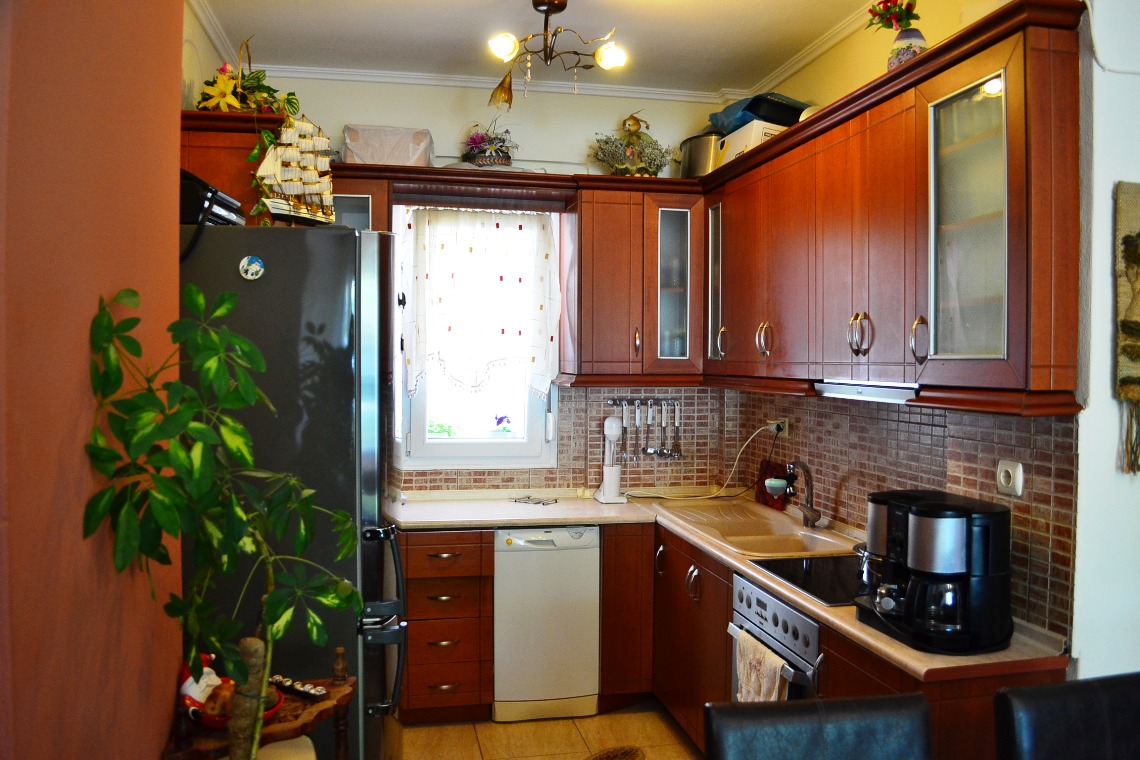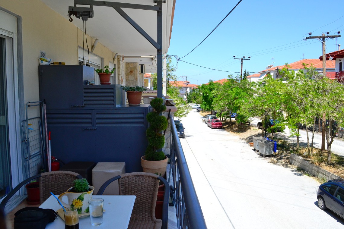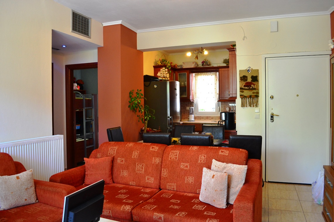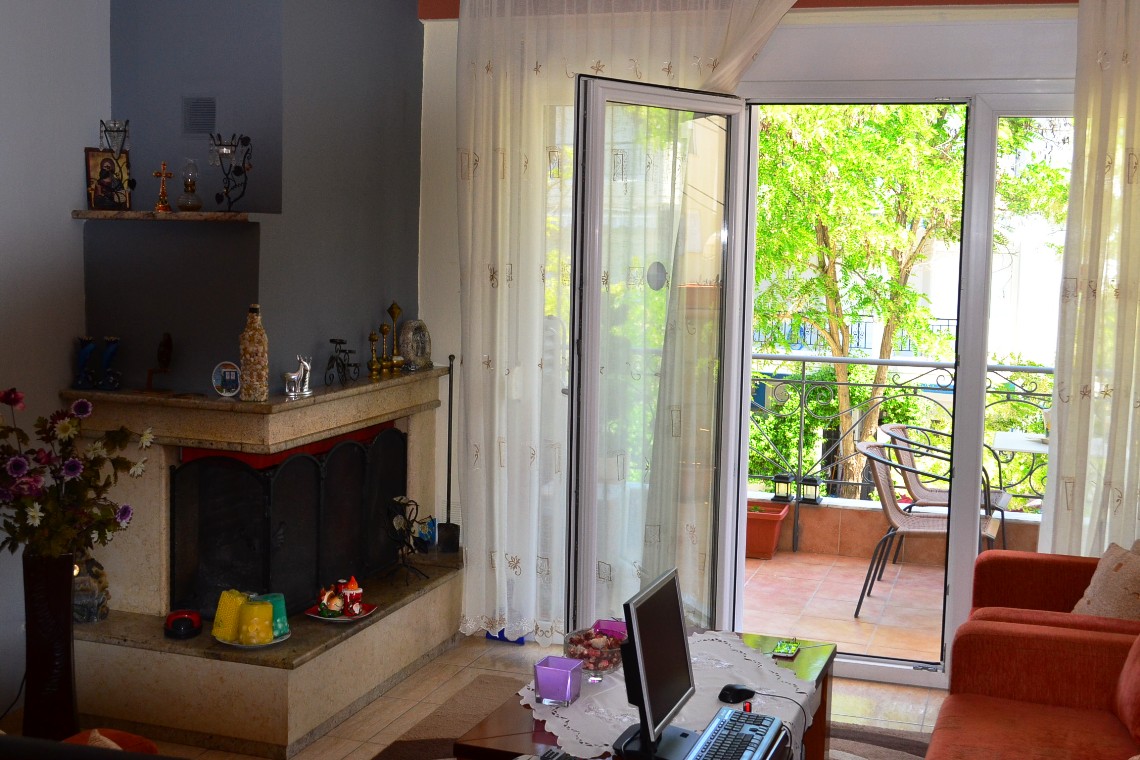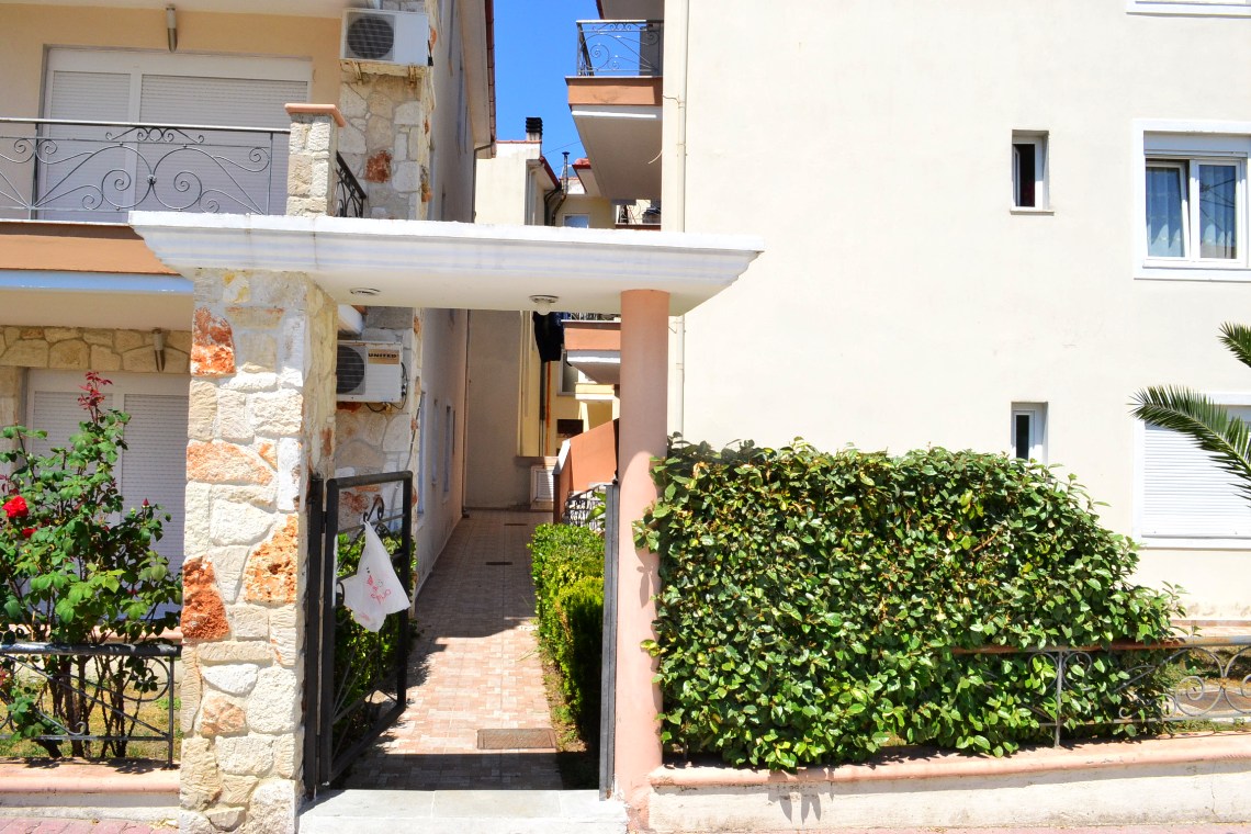 Apartment for sale 65 sqm on the Kassandra Peninsula, Halkidiki, Greece The apartment is located on the second floor and consists of 2 bedrooms, living room with kitchen, one bathroom. The apartment has a corner location. The object has a fireplace, air conditioning, heating. The property is sold with furniture. To the property belongs a Parking space.