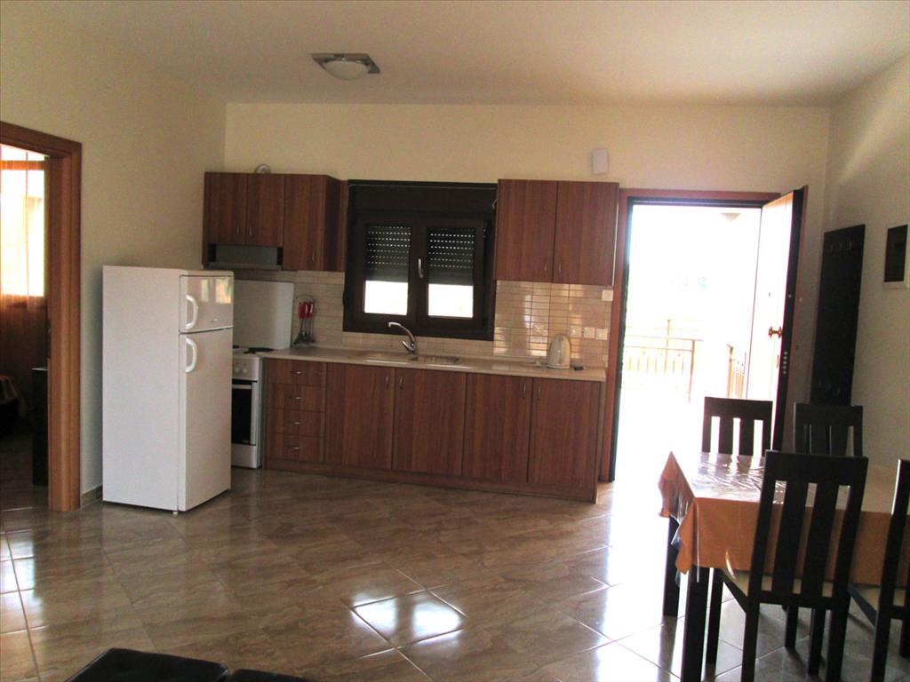 For sale apartment of 70 sqm in Sithonia, Halkidiki, Greece The apartment is located on the second floor and consists of 2 bedrooms, living room with kitchen, one bathroom. The Windows offer views of the sea, the mountains. The object has air conditioning, heating. The property is sold with furniture.