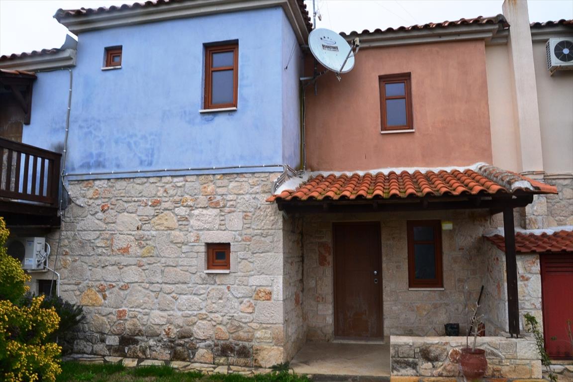 For sale townhouse with area of 80 sqm on the Kassandra Peninsula, Halkidiki, Greece Townhouse is on 2 levels. The first floor consists of living room with kitchen, one shower room. The second floor consists of 2 bedrooms, one shower room. The object has a fireplace. The property is sold with furniture. To the property belongs a Parking space. The on-site swimming pool personal use. The owners of the communal pool on site.