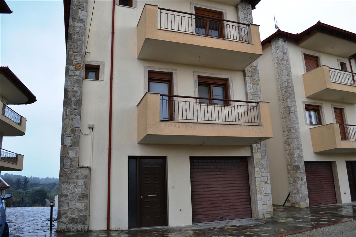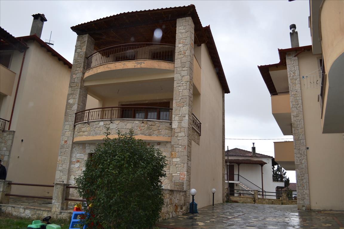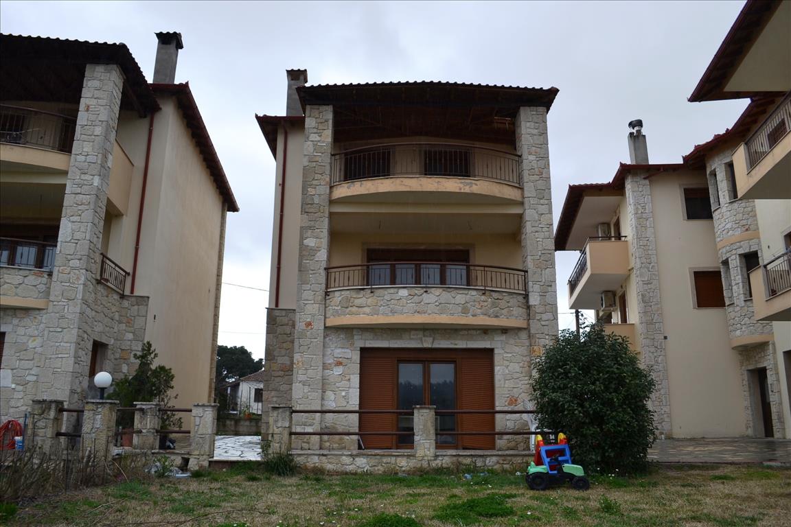 For sale 3-storey cottage area of 200 sqm on the Kassandra Peninsula, Halkidiki, Greece The first floor consists of living room with kitchen, one bathroom, one storeroom. The second floor consists of living room with kitchen, one bathroom. The third floor consists of 3 bedrooms, one bathroom. The Windows offer a magnificent view of the mountains, the forest. The object has a fireplace, heating. To the property belongs a Parking place, garden, garage.