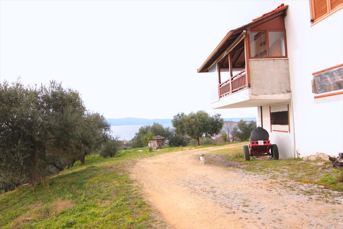 For sale 2-storey cottage with an area of 327 sq. m on the Peninsula of mount Athos, Halkidiki, Greece The first floor consists of the living room. The second floor consists of 3 bedrooms, living room with kitchen, 2 bathrooms, one storeroom. The Windows offer a magnificent view of the sea, the mountains, the city, the forest. The object has solar panels for water heating, fireplace, air conditioning, heating. The property is sold with furniture. To the property belongs a Parking space, garden.