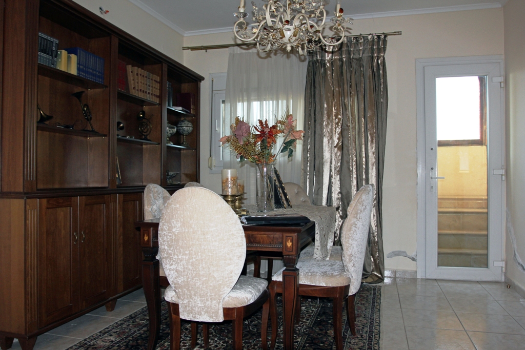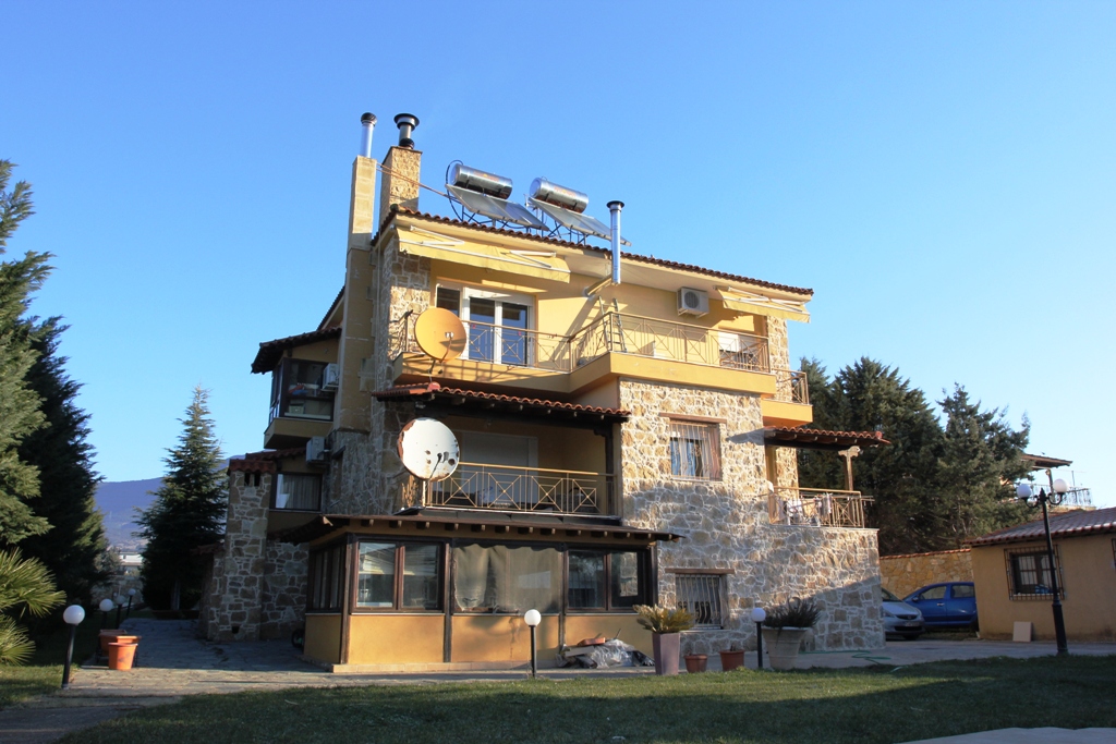 For sale 3-storey cottage 300 square meters in the suburbs of Thessaloniki. The first floor consists of 4 bedrooms, living room, one kitchen, one shower room. The second floor consists of 2 bedrooms, living room, one kitchen, one bathroom. The third floor consists of 2 bedrooms, living room with kitchen, one bathroom. The object has solar panels for water heating, fireplace, air conditioning, barbecue, heating. The object has an alarm system. To the property belongs a Parking space, garden.