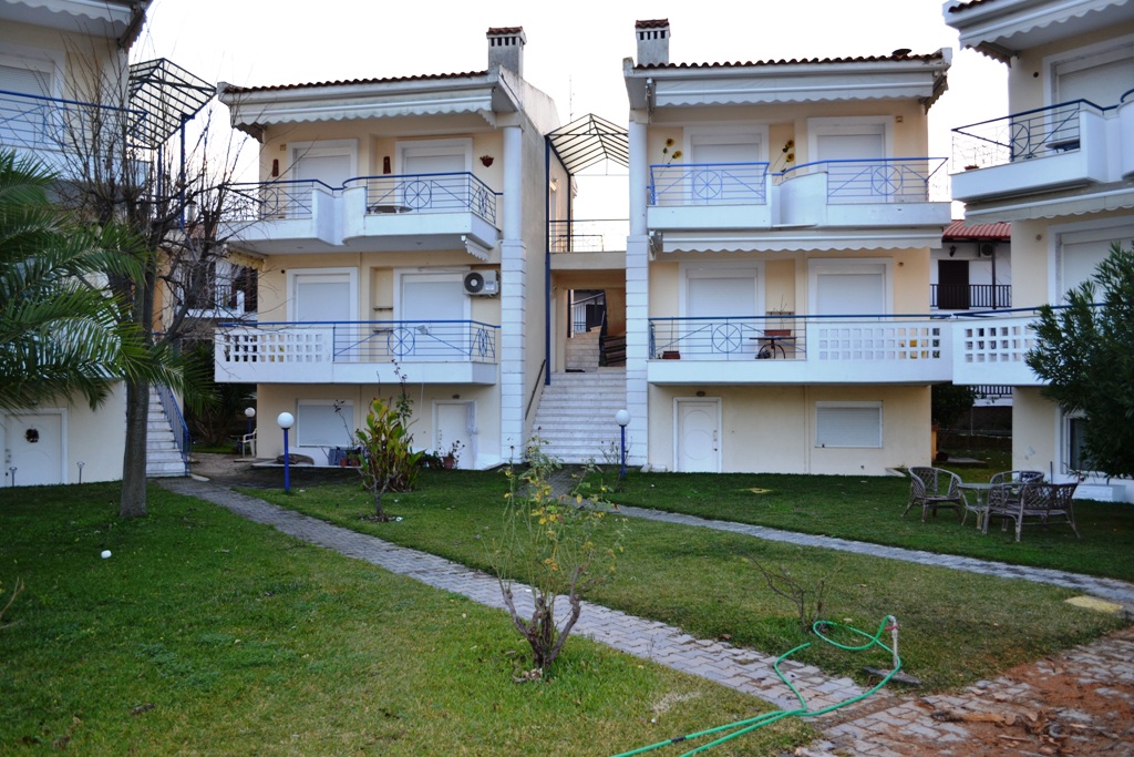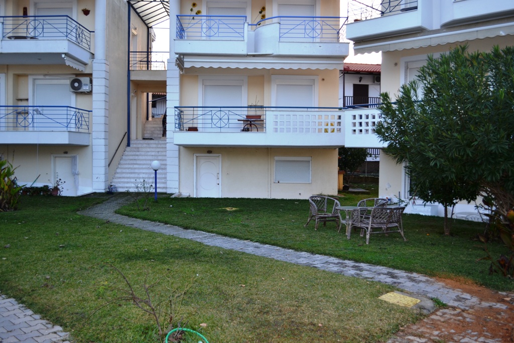 Apartment for sale 60 sqm on the Kassandra Peninsula, Halkidiki, Greece The apartment is located on the ground floor and consists of 2 bedrooms, living room with kitchen, one shower room. The object is heated. The property is sold with furniture. To the property belongs a Parking space. Also sold two apartment 60 sq. m. for 60,000 euros.