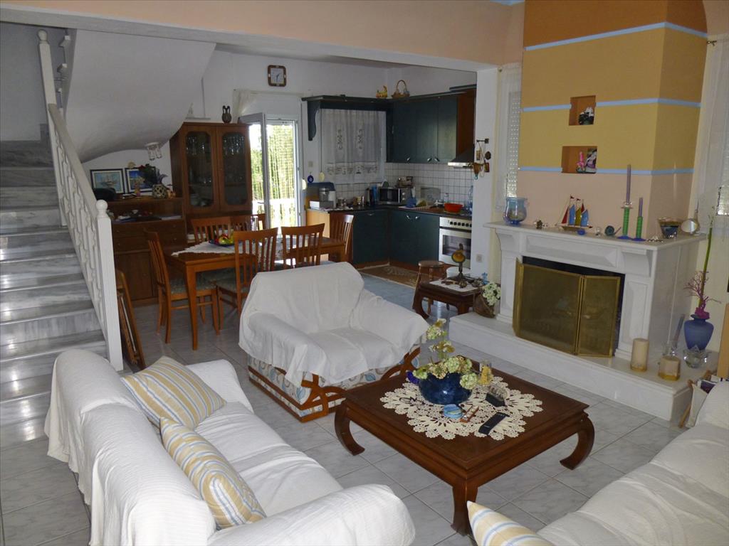 House for sale area of 130 sq m at the Olympic Riviera. The townhouse is on 3 levels. The basement consists of one storeroom. The first floor consists of living room with kitchen, one bathroom. The second floor consists of 3 bedrooms, one bathroom. The Windows offer a magnificent view of the sea, the mountains. The object has solar panels for water heating, fireplace, air conditioning, awnings, barbecue, heating. The property is sold with furniture. To the property belongs a Parking space, garden. Available in 2 ryadomstoyaschih townhouse. The price of each 350.000 euros.