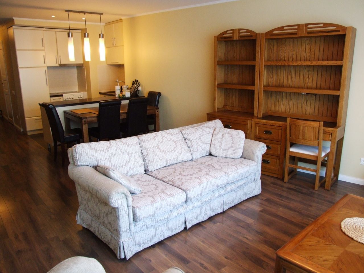 Flat for sale fully furnished: kitchen (fridge, oven, stove, dishwasher), washing machine, entrance hall, beautifully furnished living room with sofa, fully equipped bedroom, a dining table with chairs, air conditioning, wardrobe room, two bathrooms.