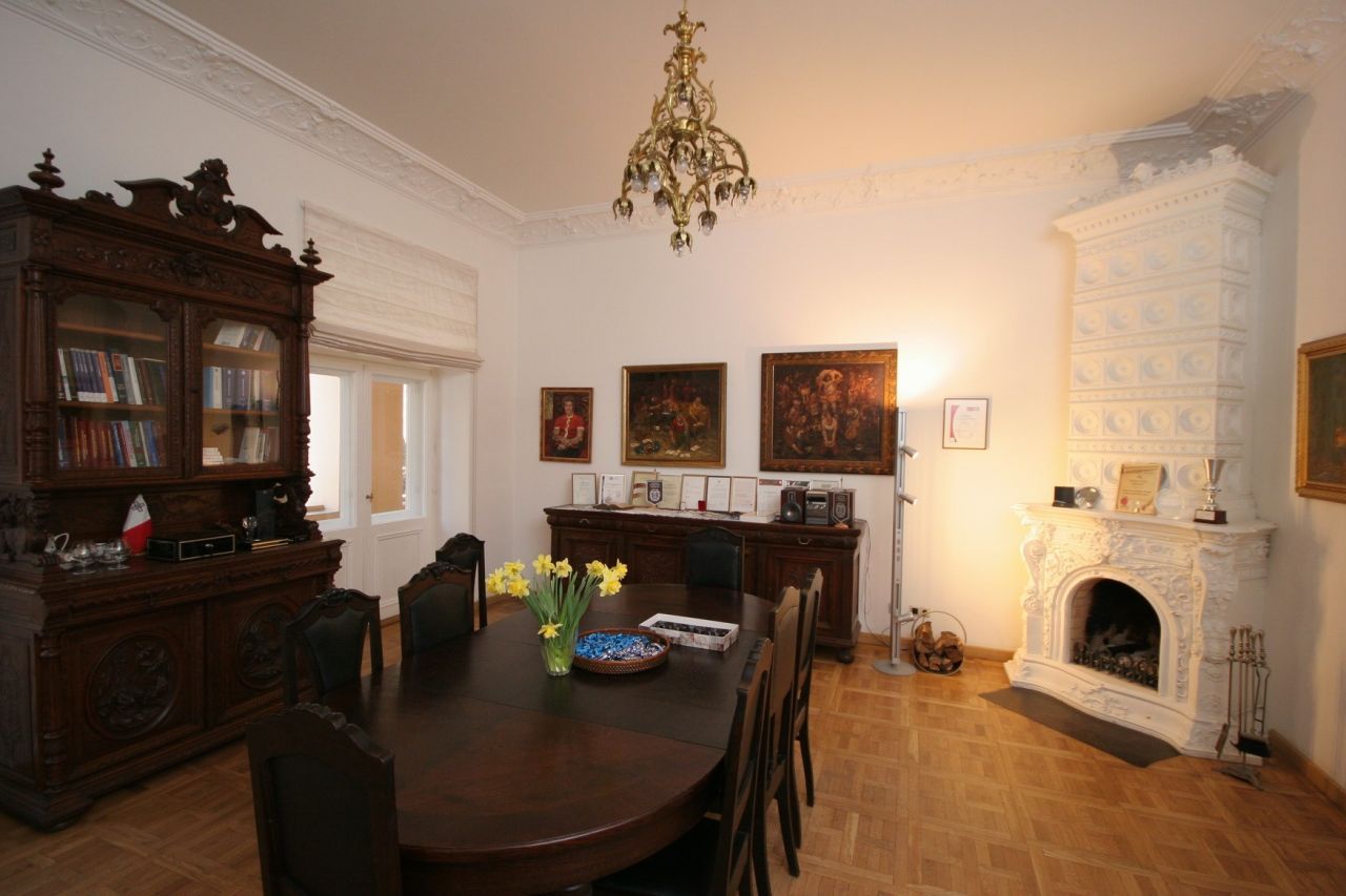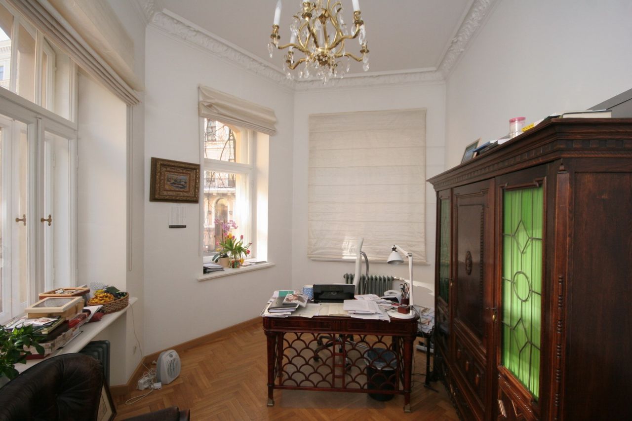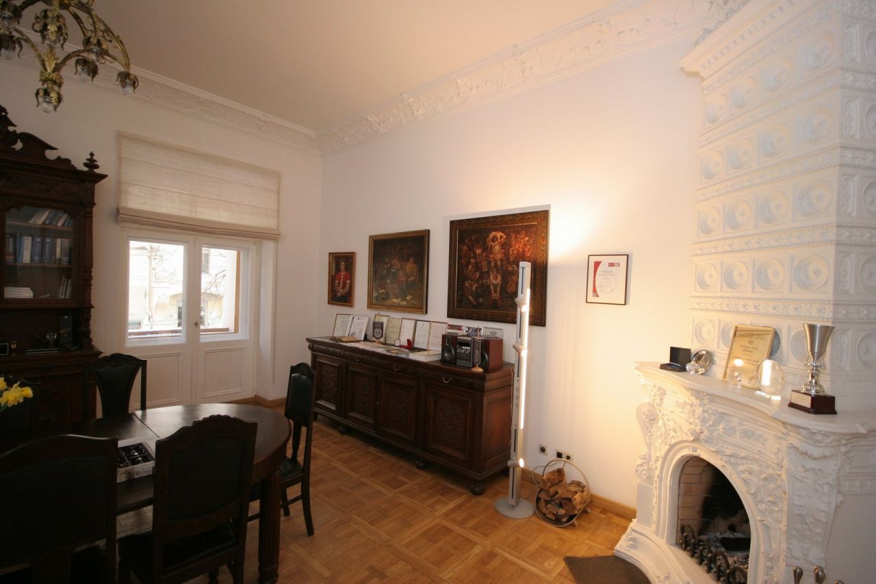 On the ground floor there is also provided a place for six stores or offices. The apartments are fully prepared for the interior, restored ceilings and stucco decorations that are painted in white. On the walls have been restored all the decorative elements of the interior - moldings and rosettes. The floors are covered with oak parquet. Windows and interior doors have been restored or made from scratch on the old models. Preserved and restored furnace. On the courtyard side of each apartment, starting from the second floor with a balcony. Restored as balconies, located on the front side.