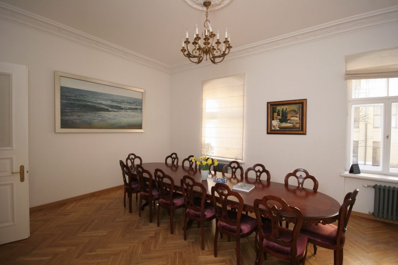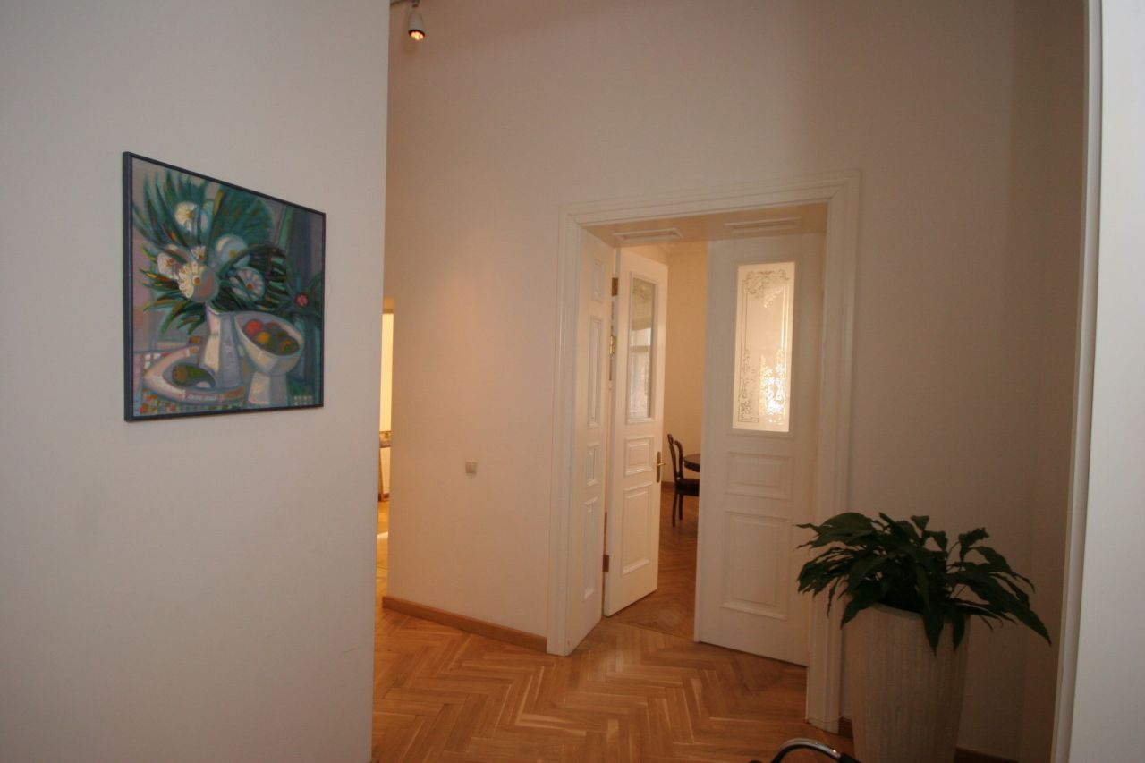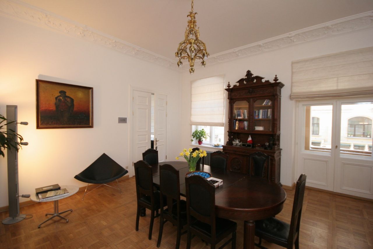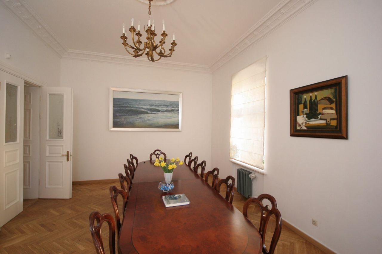 On the ground floor there is also provided a place for six stores or offices. The apartments are fully prepared for the interior, restored ceilings and stucco decorations that are painted in white. On the walls have been restored all the decorative elements of the interior - moldings and rosettes. The floors are covered with oak parquet. Windows and interior doors have been restored or made from scratch on the old models. Preserved and restored furnace. On the courtyard side of each apartment, starting from the second floor with a balcony. Restored as balconies, located on the front side.