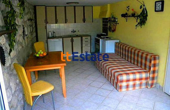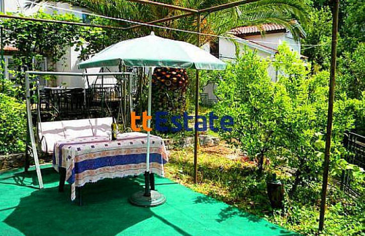 Two-storey house 100m ^ 2 on a plot of 350m ^ 2. Three bedrooms, two bathrooms (on the first and second floors). Terrace on the second floor with stunning sea views. In the middle of the plot is a magnificent palm tree. Vineyard, kiwi, citrus trees, cypresses and figs. In addition, there are two beautiful open terraces on the plot, there is a grill (rostile), plus a cauldron for pilau.