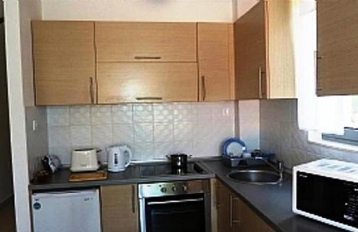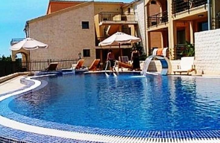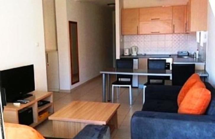 The apartment is on the 1st floor, area 57. 4 m2, consists of living room / kitchen / dining room, 2 bedrooms, bathroom and terrace with access to the pool.
