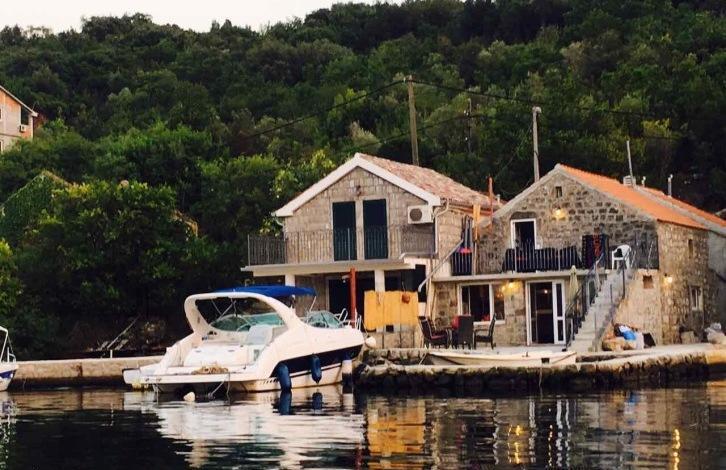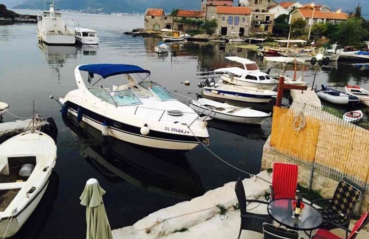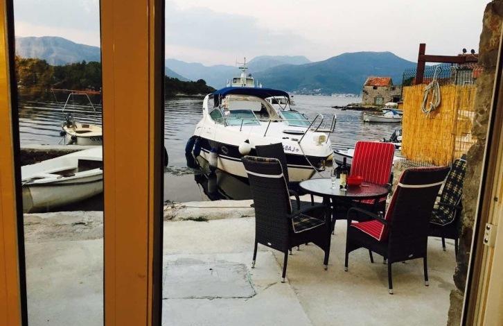 A stone house with a pier in the town of Krasici is for sale. The house is located on the first line. The area of the house is about 40 m2, plus a terrace near the house about 20 m2. The house is stone, two-story. House structure: 1st floor: terrace, kitchen with dining room, bedroom, bathroom; 2nd floor: 1 apartment with a bathroom and a terrace. The house has its own parking for 2 cars.