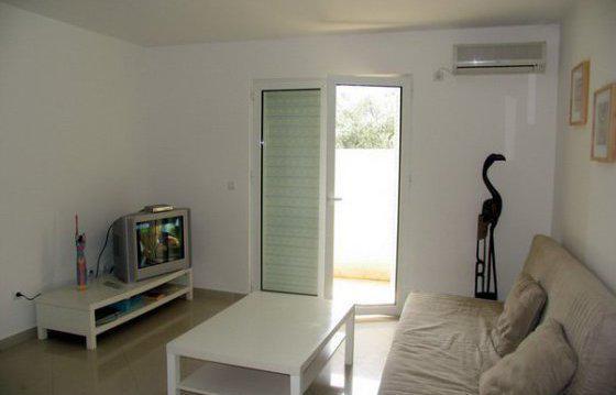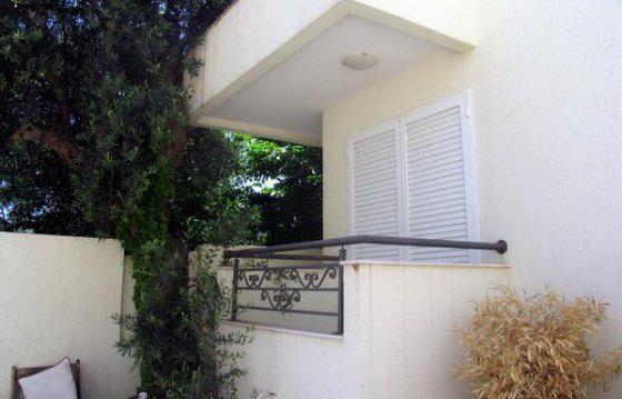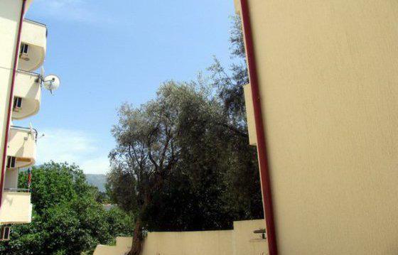 The apartment is on the first floor, next to the green olive grove.