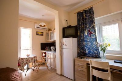 Во дворе - парковка и оливковые и цитрусовые деревья: мандарины, апельсин, лимон).